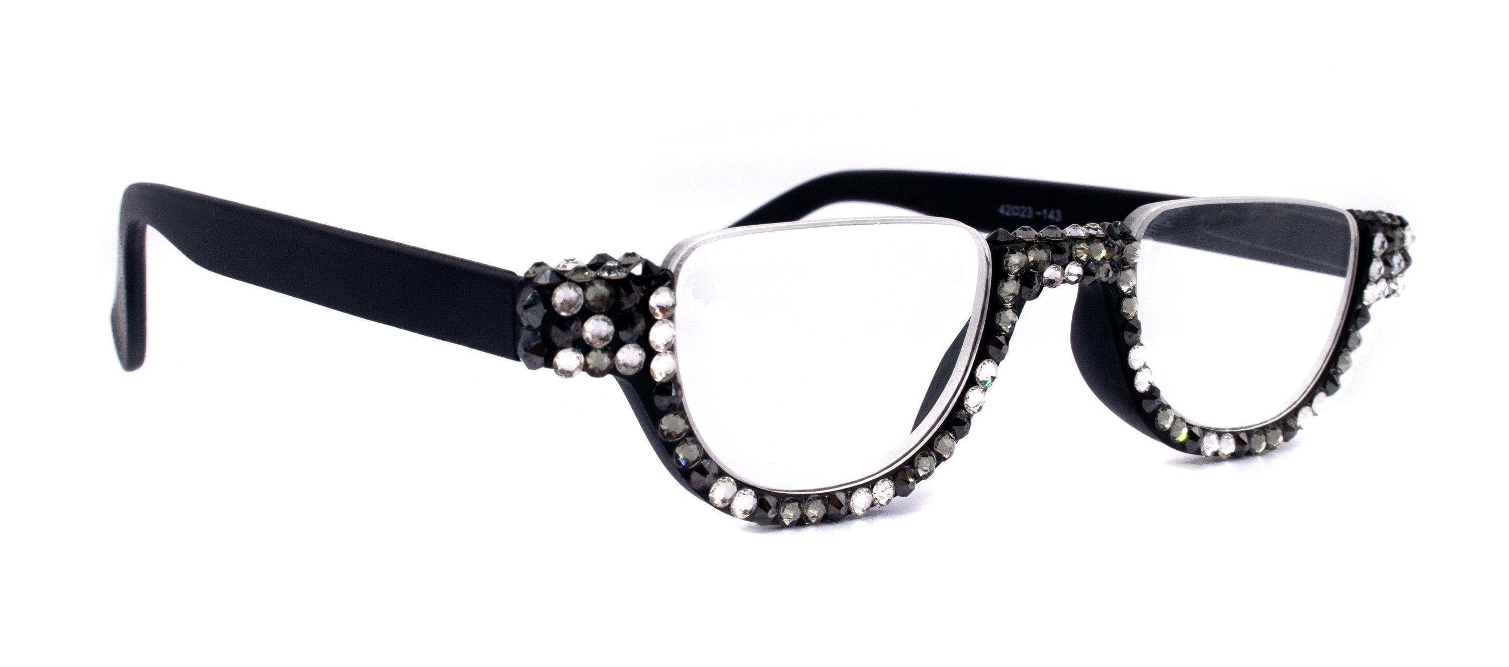 Half Moon, (Bling) Woman Reading Glasses Adorned W (Hematite, Clear, Black Diamond) Genuine European Crystals +1.25..+4, NY Fifth Avenue