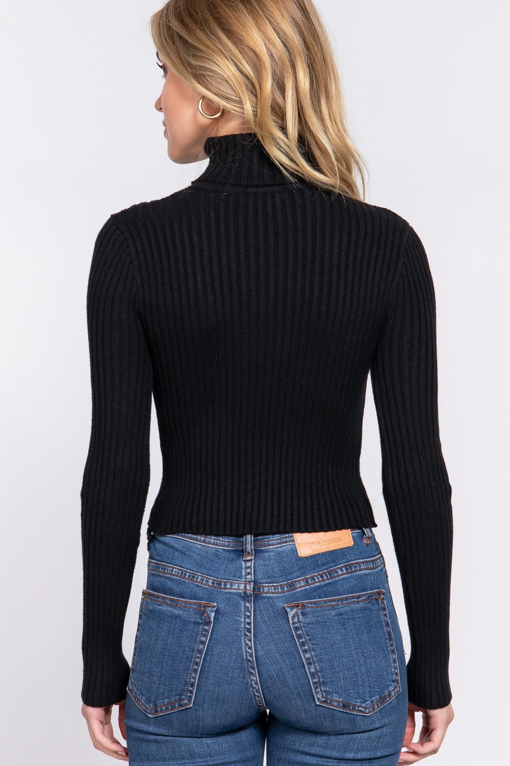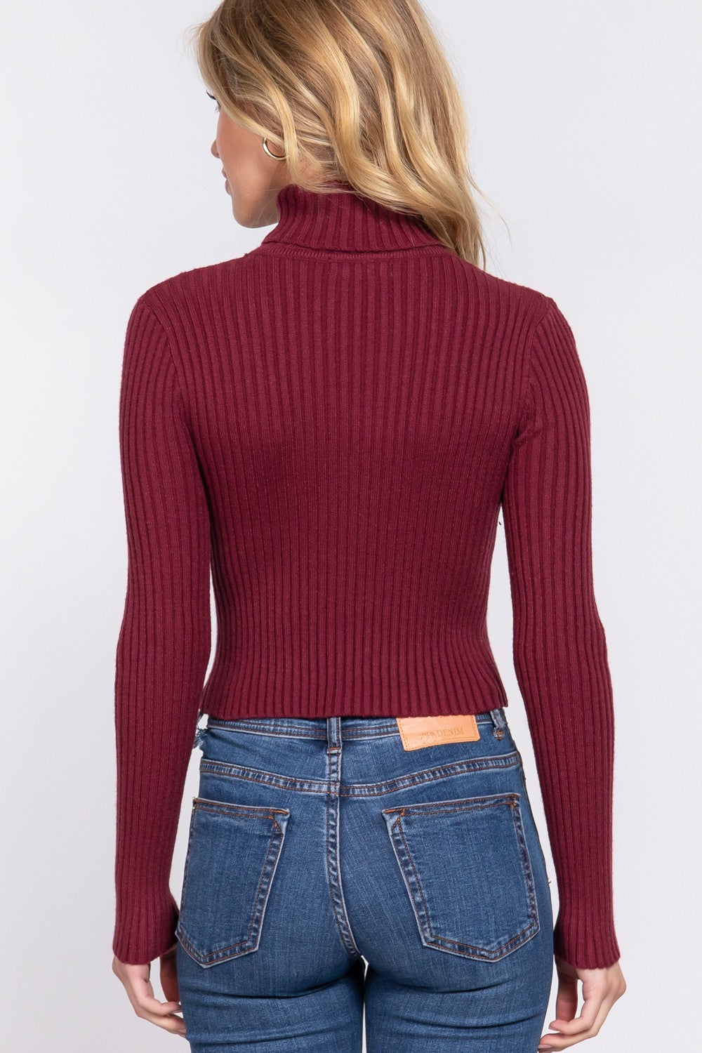 Long Sleeve Turtle Neck Fitted Crop Rib Sweater.