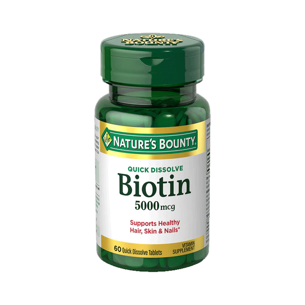 Nature's Bounty Biotin 5000 Mcg Vitamin Supplement Quick Dissolve Natural Strawberry Flavor – 60 Tablets