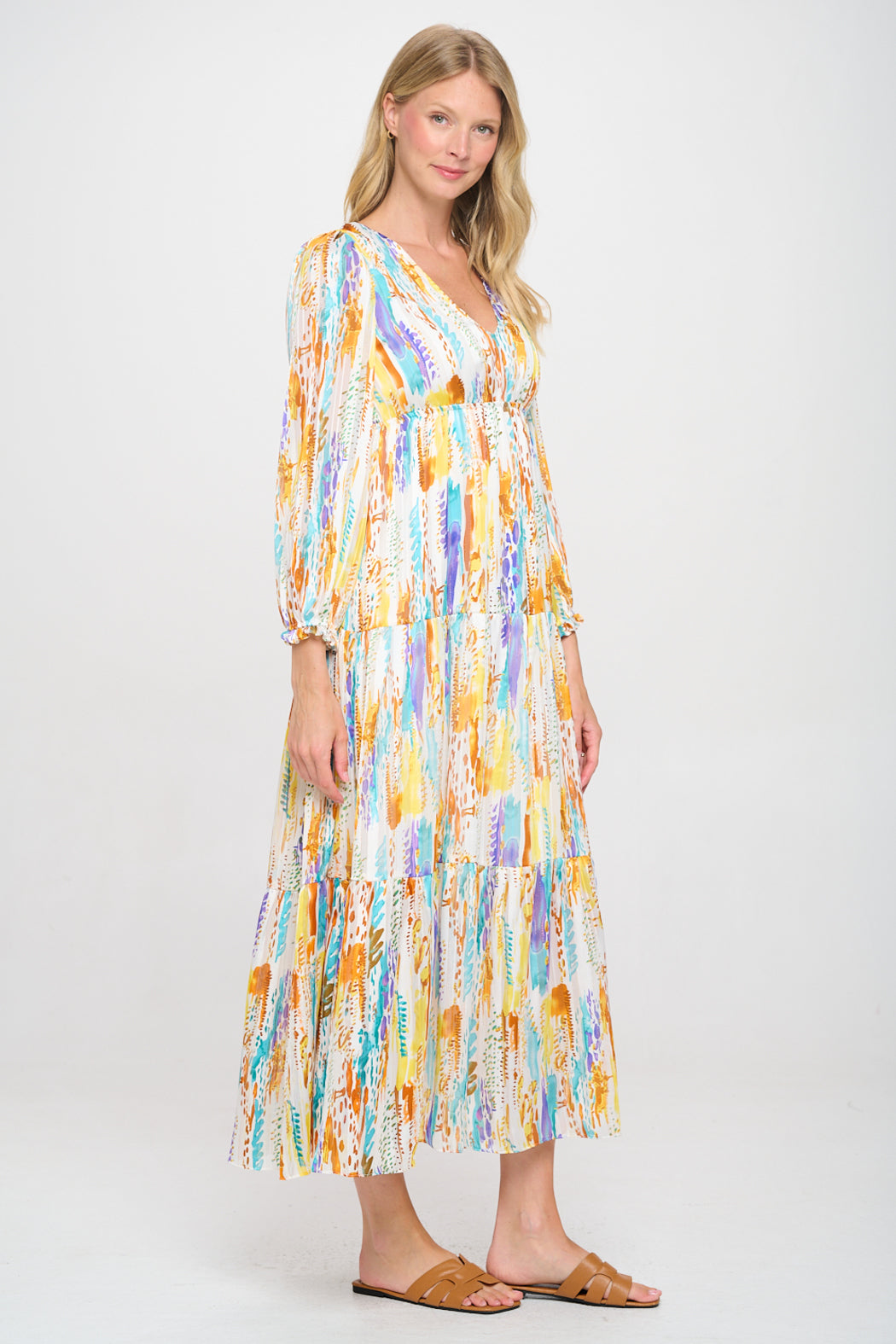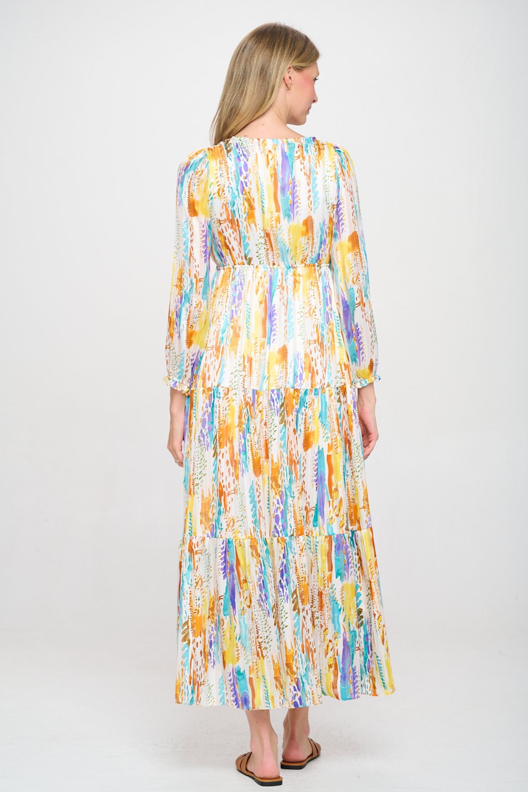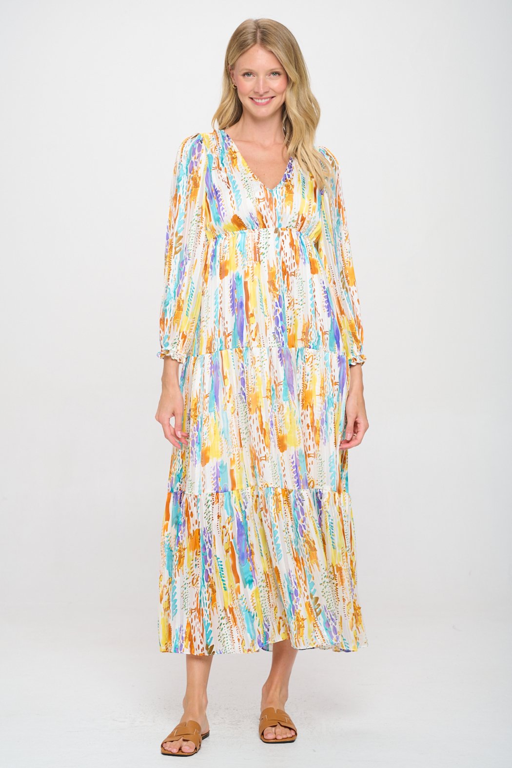 Elevate your boutique's collection with the Meet Me in Santorini vibrant maxi dress. This eye-catching piece features a stunning array of colorful abstract prints, perfect for adding a burst of energy to any wardrobe. Designed with a flattering V-neckline and flowy long sleeves, this dress combines comfort and style effortlessly. The tiered skirt adds a touch of bohemian flair, making it ideal for any casual or semi-formal occasion. Attract customers looking for unique, high-quality contemporary fashion with this standout dress from Meet Me in Santorini.