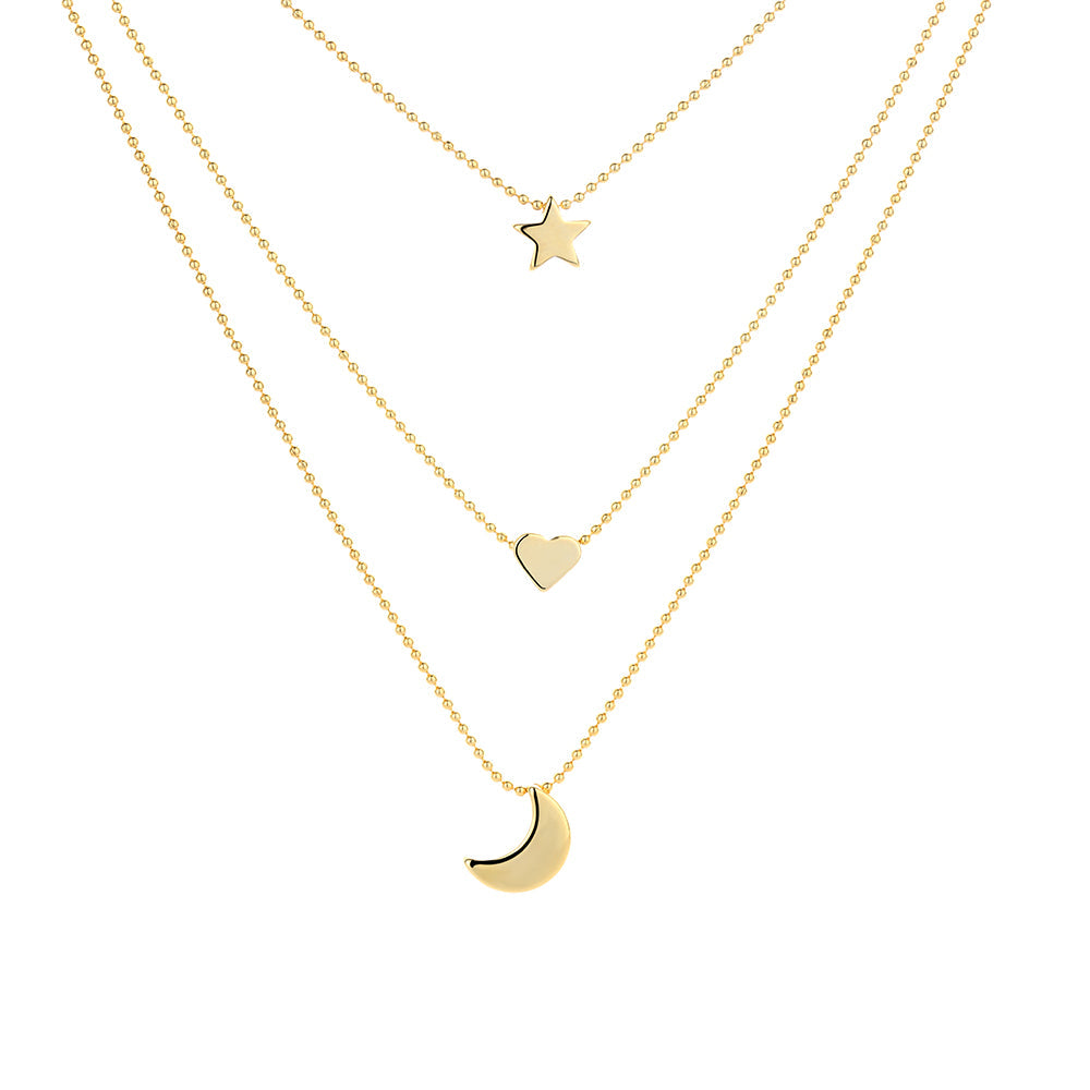 Whether you're looking for a special gift for a loved one or a beautiful piece of jewelry to add to your own collection, the Sterling Silver and Yellow Gold Star Heart & Moon Necklace is a stunning choice that will be treasured for years to come.