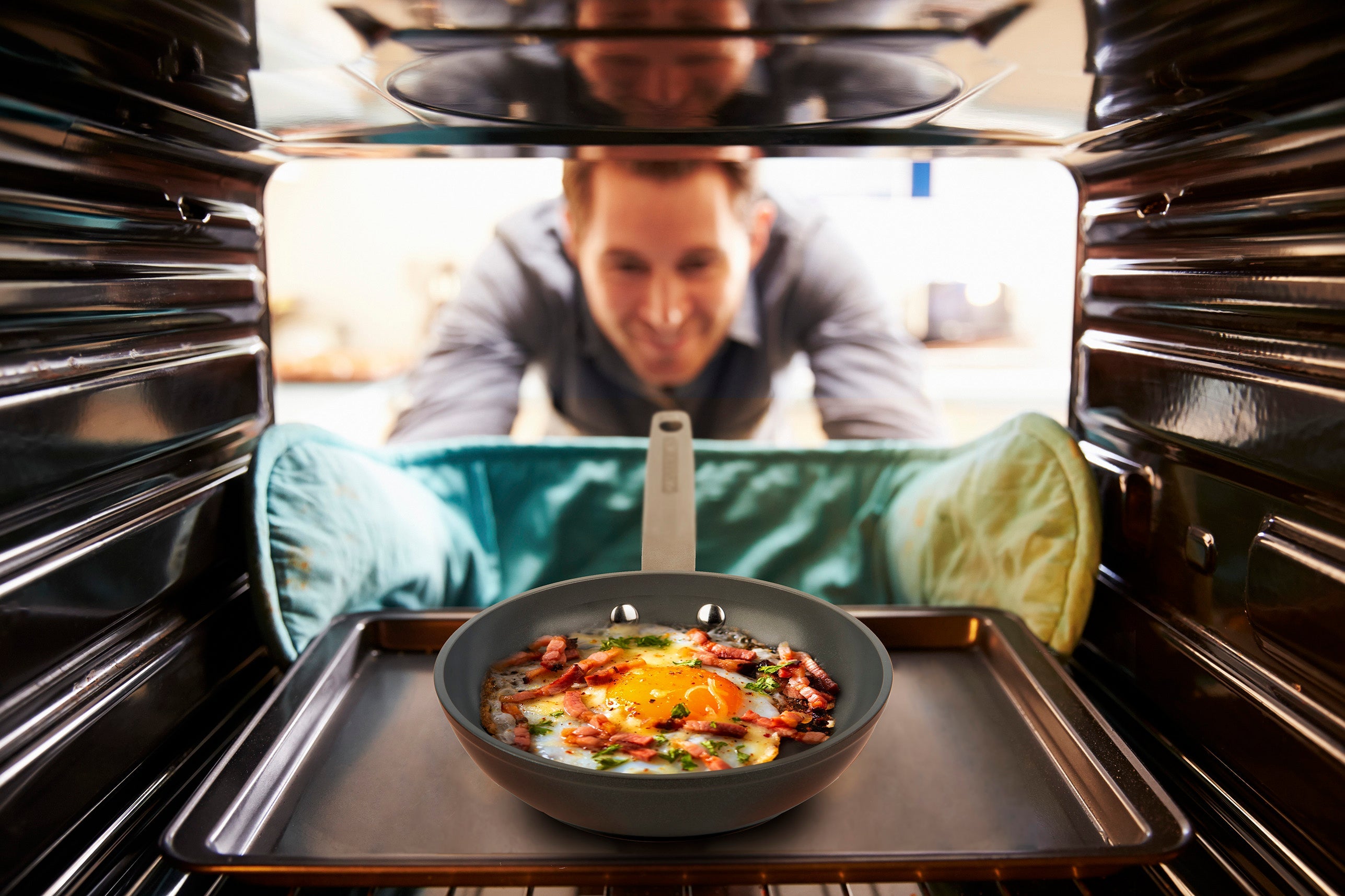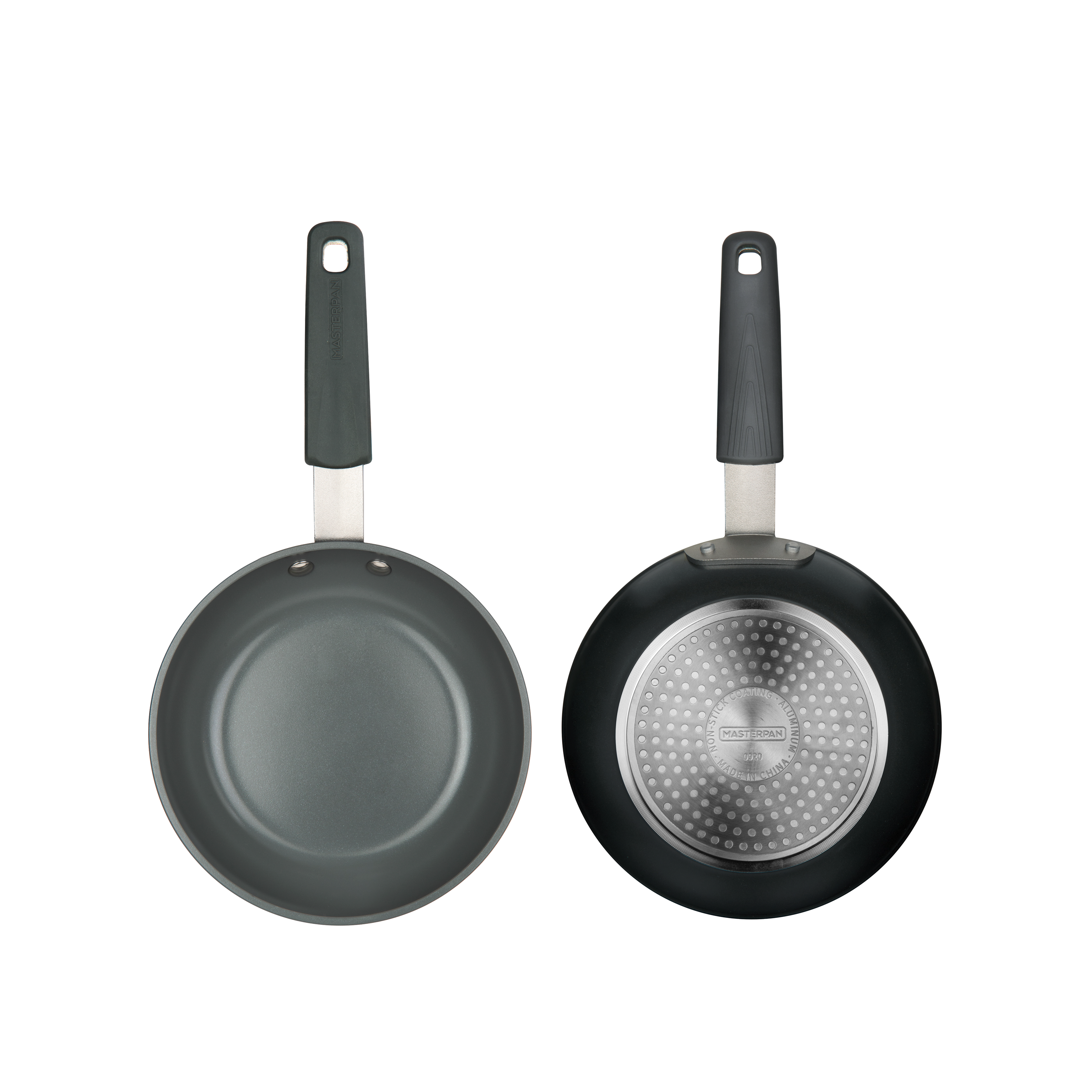The MASTERPAN 8"(20cm) and 9.5" (24cm) Fry Pan & Skillet is a must have for any kitchen and is crafted from cast aluminum with a riveted stainless steel handle and removeable silicone handle cover, and then finished with a premium ceramic non-stick coating. It has deep 2” sides that reduces easy spillage and splatter when frying, making it the ideal pan for stir frys, crepes, pancakes, eggs, quesadillas, and much more. The sleek style and ultra durability fulfills all your cooking desires. Part of our Chef’s Series, the pan boasts a streamlined look and stainless steel handle making it an ideal addition to any kitchen and your cooking needs. Cookware that is guaranteed to perform as amazing as it looks! Riveted handle provides added support and removable, silicone handle cover is versatile for using in and out of the oven.