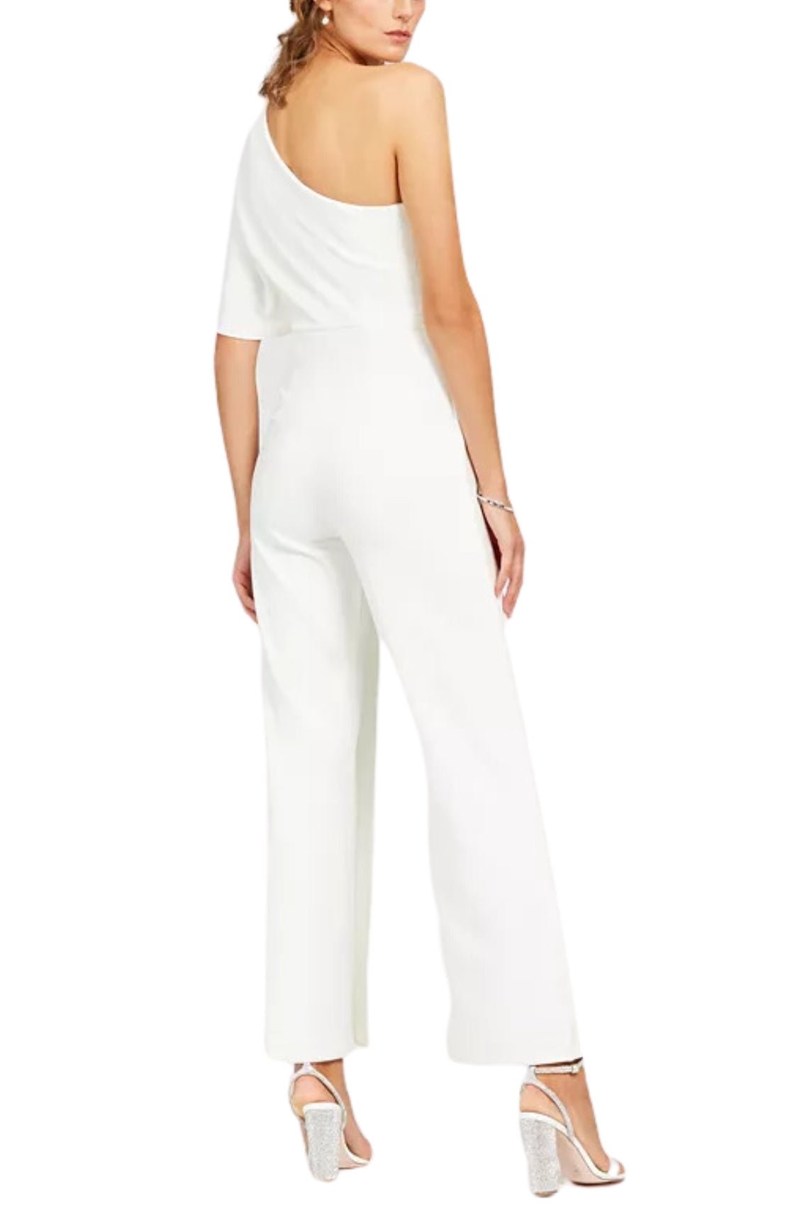 Crafted from stretch crepe fabric, this jumpsuit offers both comfort and elegance. The one-shoulder bodice adds a touch of sophistication, while the wide-leg silhouette exudes modern flair. The tailored fit accentuates your figure, giving you a chic and polished look.