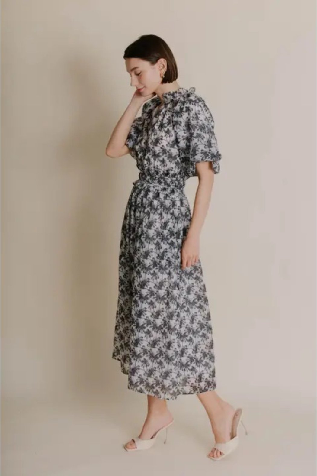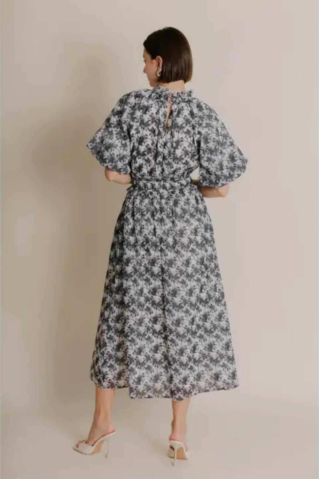 Perfect for Spring! Wear this sweet black and white floral midi dress for any one of those special occasions!  You WILL have something to wear!