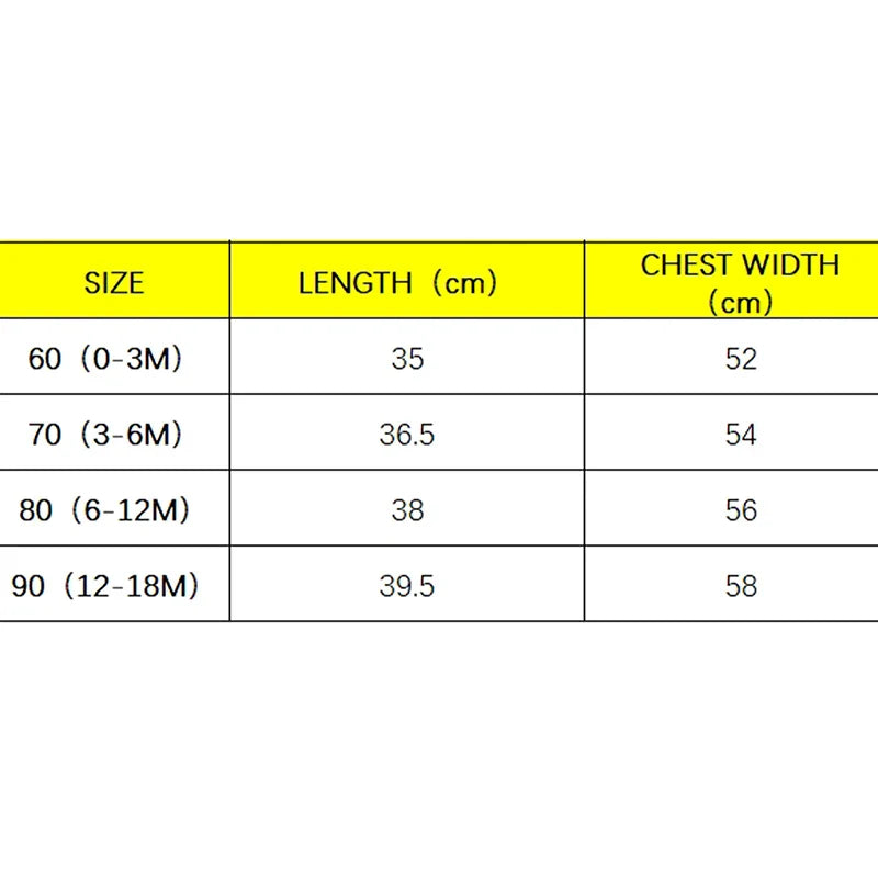0-3M Length: 12.99 Bust: 20.47 Hip: 21.26 Advised Age: 0-3 Months