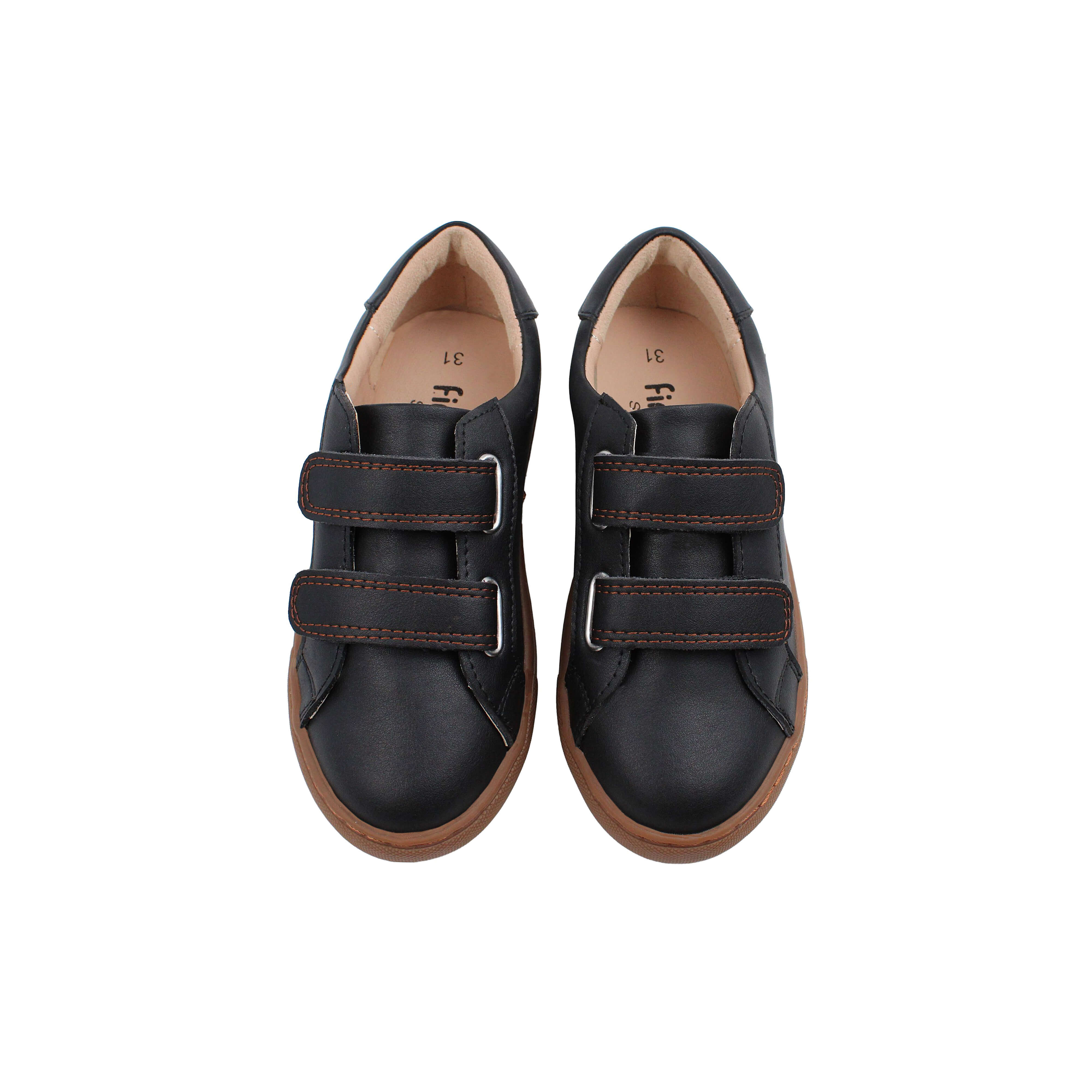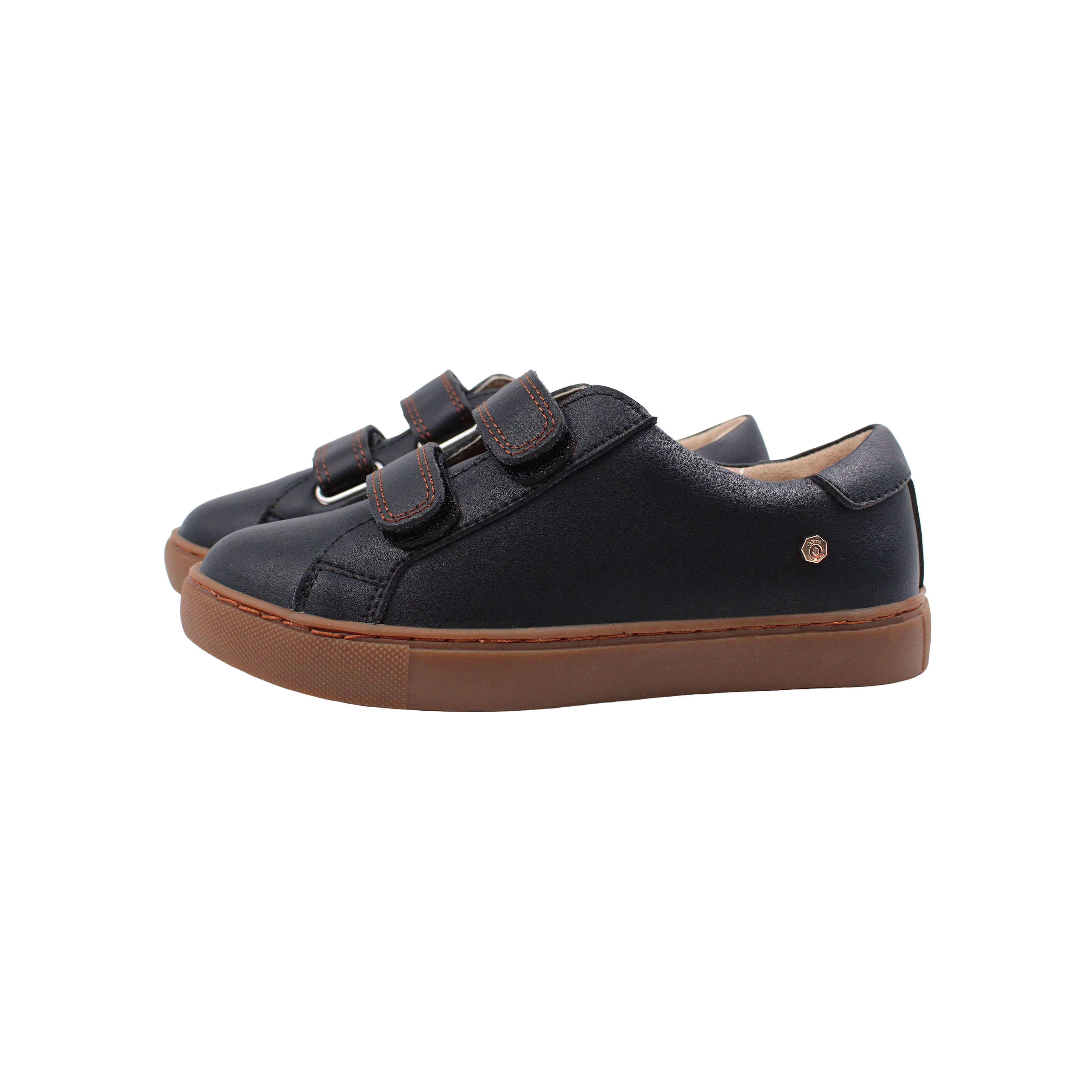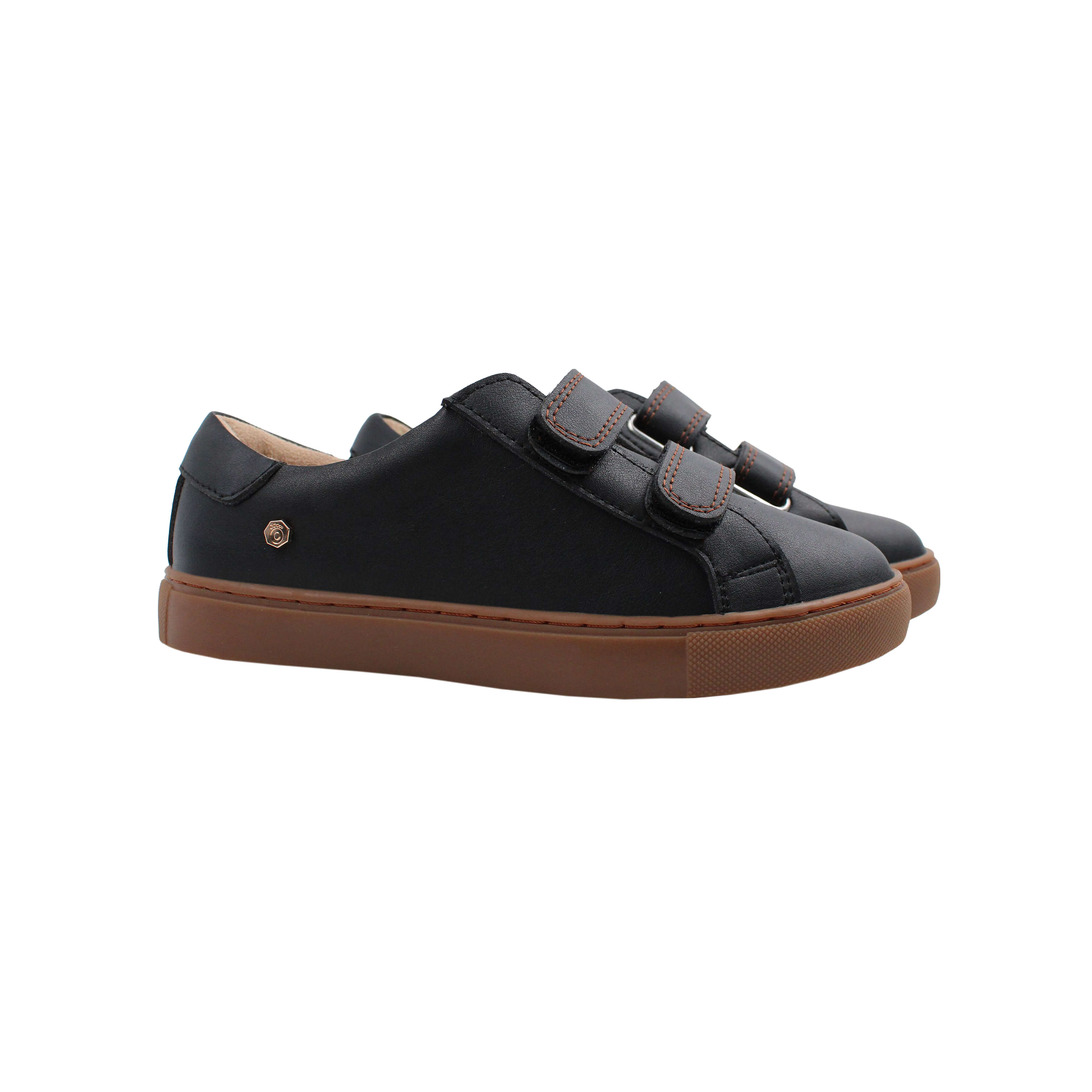 Black leather boys sneaker with brown stitching
