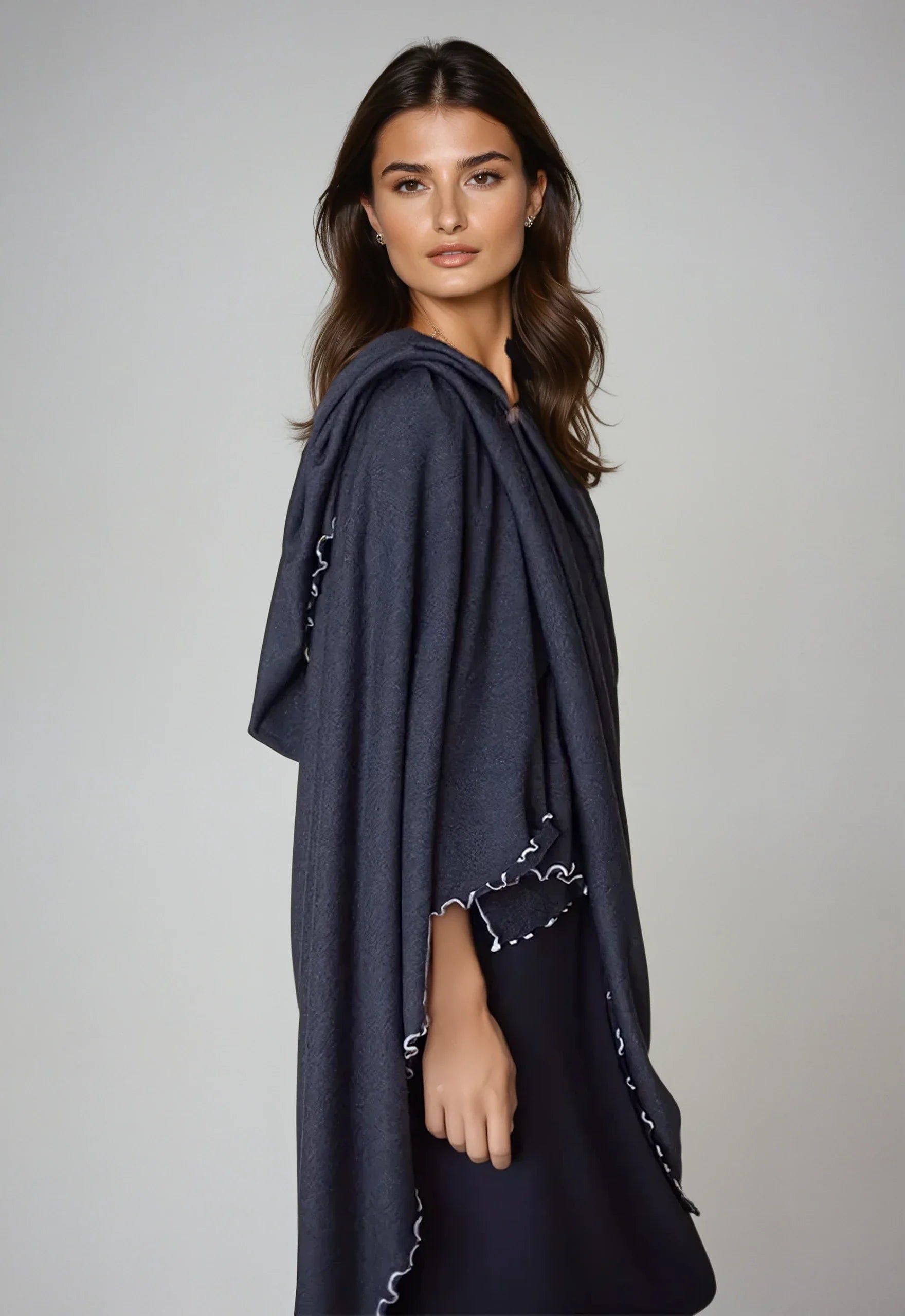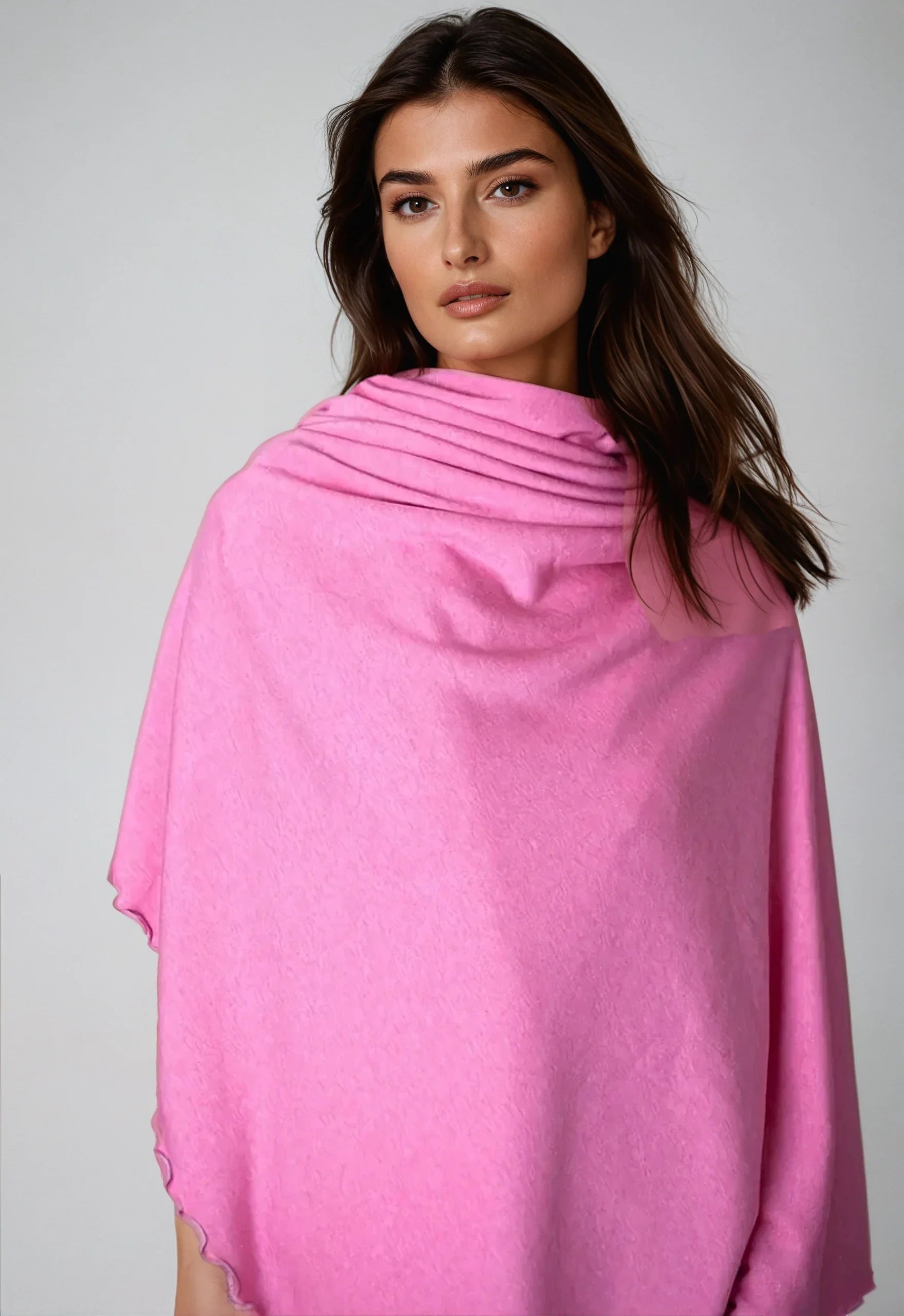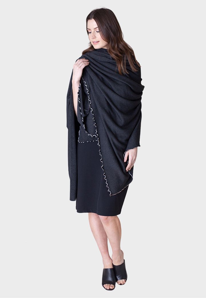 The luxuriously large size works as a wrap or blanket. Perfect for lounging at home, long flights, or cool nights. Generously sized 54" L x 70" W to wear as a pashmina or wrap.