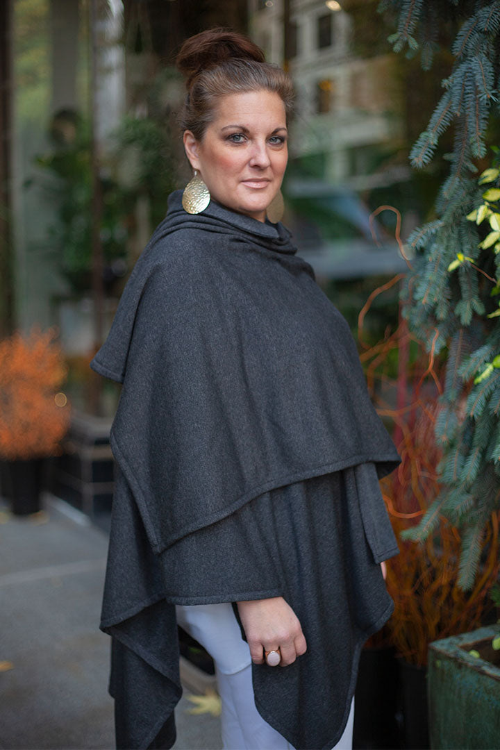 With its fluid drape, refined collar detail, and cashmere-like feel, this wrap is your go-to layer for everything from travel days to date nights.