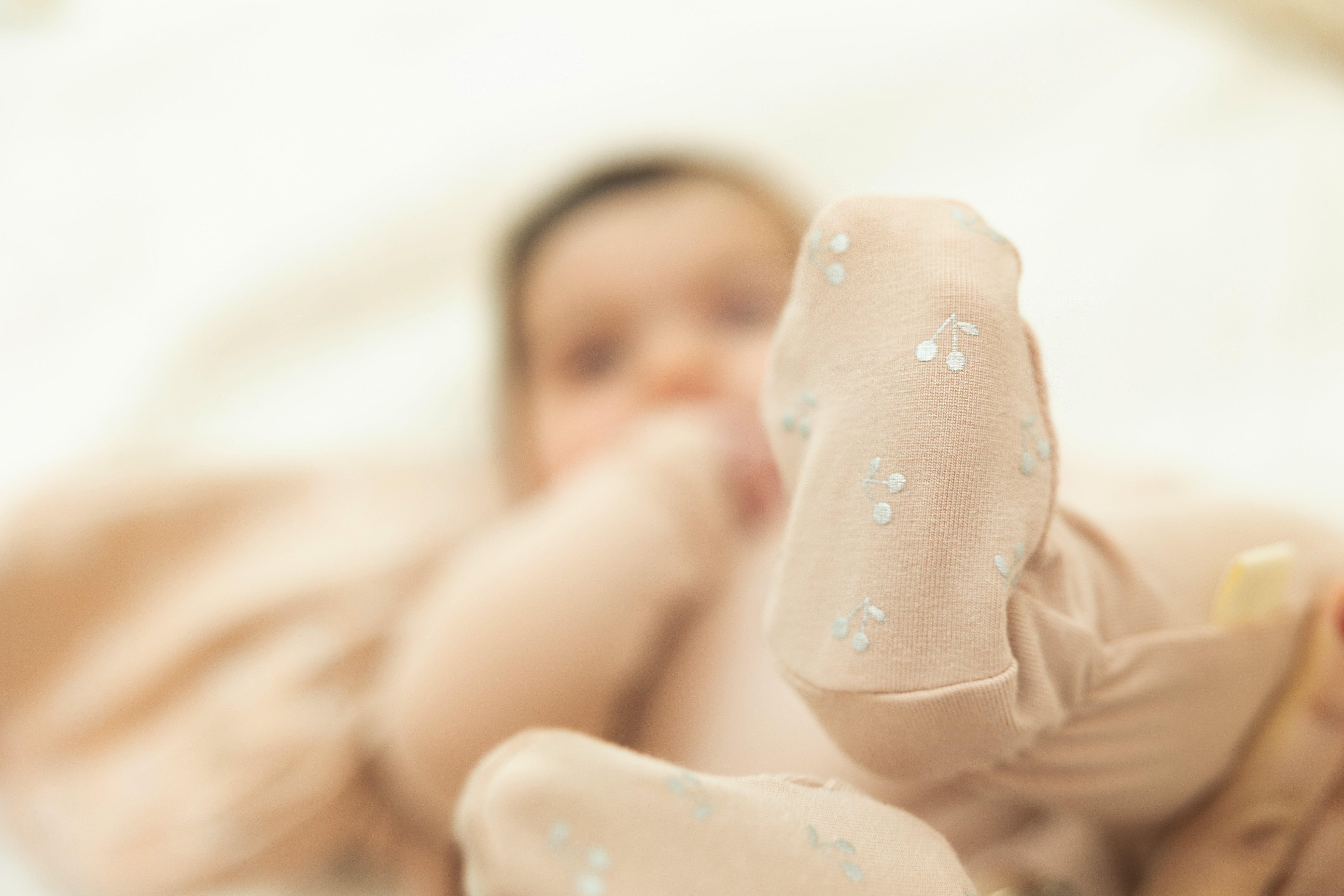 Baby boys and baby girls cherry print jersey knit romper with center back snap closure, and elastic at cuffs. Matching bonnet with strap closure.ֲ