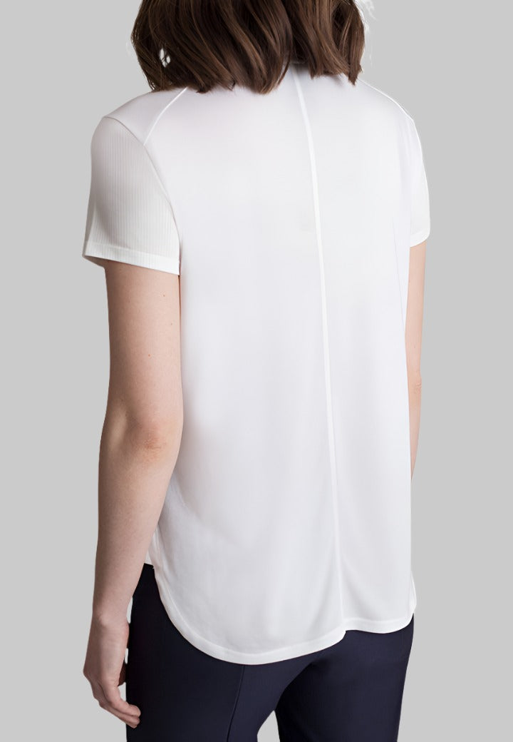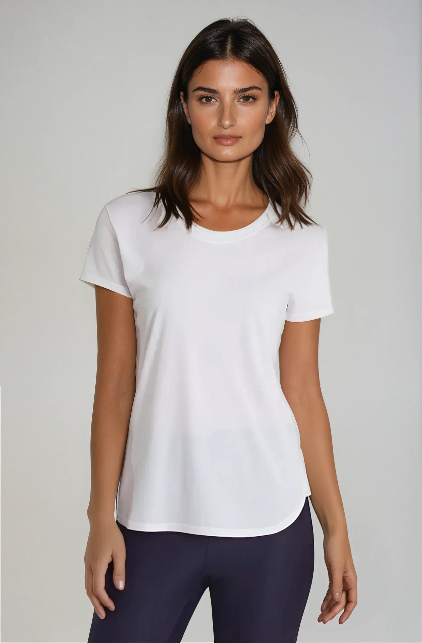 ALMOST SOLD OUT! The essential white t-shirt has a technical makeover: it's a white t-shirt that will STAY white, thanks to the technical fabric that is breathable, moisture-managing, and feels weightless against your skin.