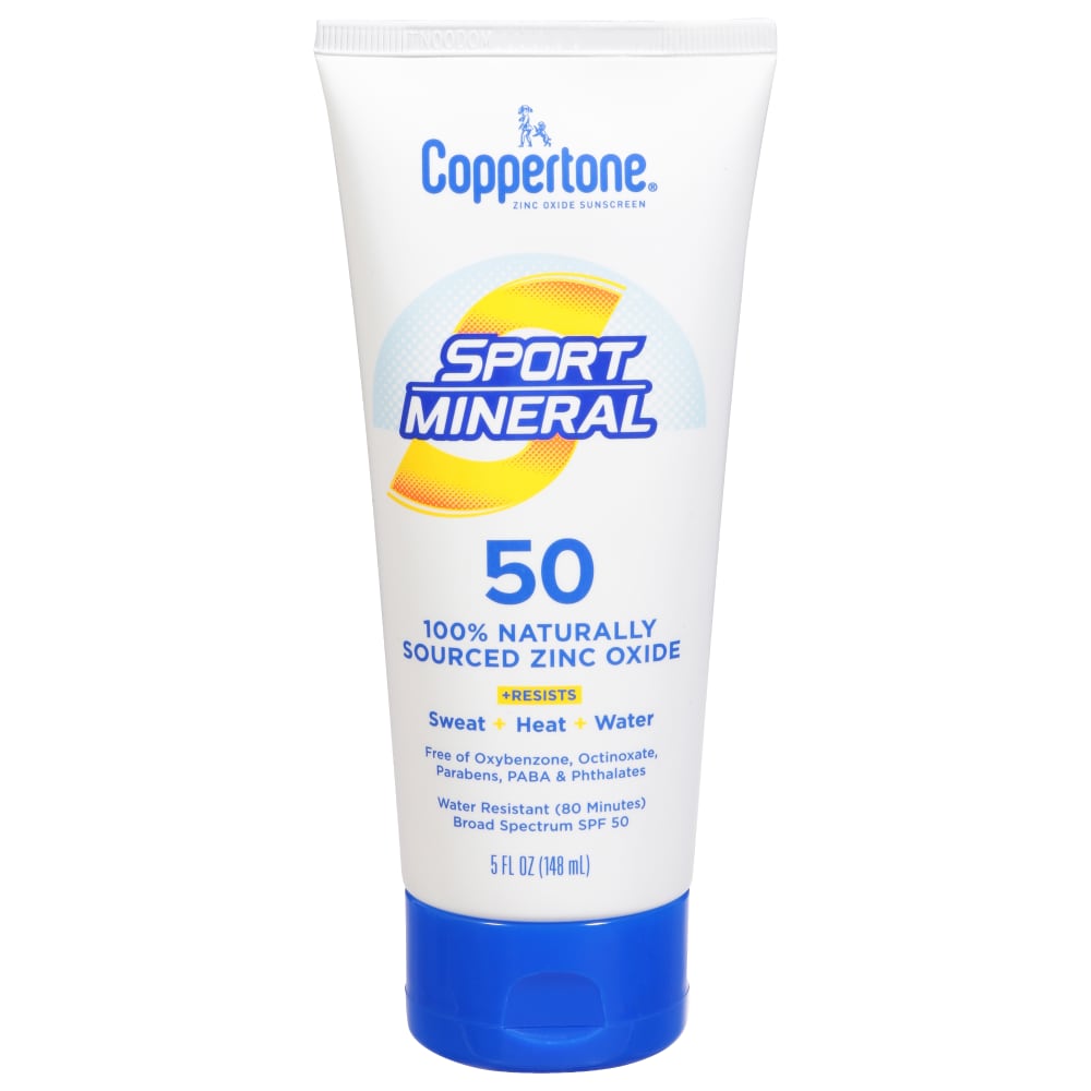 Coppertone Sport Mineral SPF 50 Sunscreen Lotion is a 100% naturally sourced zinc-oxide sunscreen lotion. Designed to stay on strong when you sweat, this high-performance sunscreen protects you from the sun with a durable and water-resistant formula (80 minutes). Protects your skin from up to 98% of the sun's most damaging UV rays. Free of oxybenzone, octinoxate, PABA, parabens, phthalates, dyes, & fragrance.