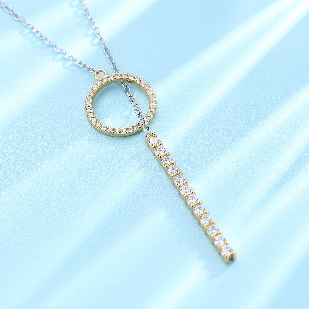 The Crystal Two Tone Lariat Necklace is a stunning and elegant piece of jewelry that features high-quality materials and a timeless design. The necklace is crafted from durable and lustrous sterling silver and features a two-tone design with a combination of silver and rose gold finishes.