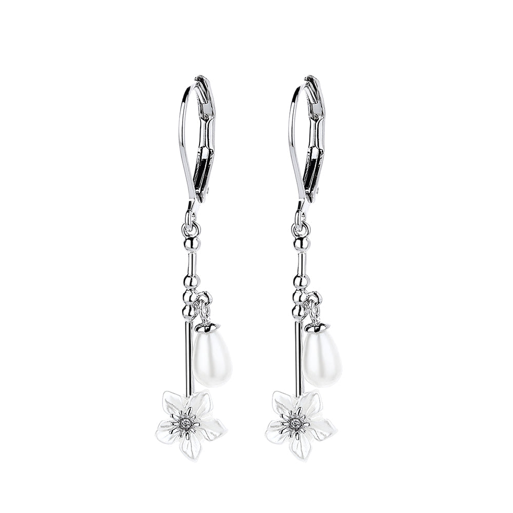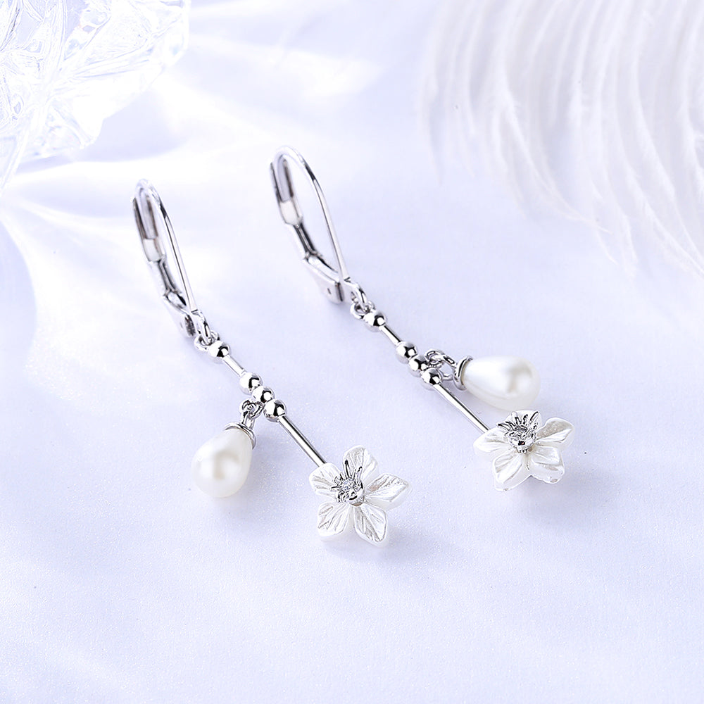 These Cultured Pearl & Sterling Silver Floral Leverback Drop Earrings are a stunning and elegant accessory that will add a touch of sophistication to any outfit. The earrings are crafted from high-quality 925 sterling silver, which is known for its durability, tarnish resistance, and hypoallergenic properties.