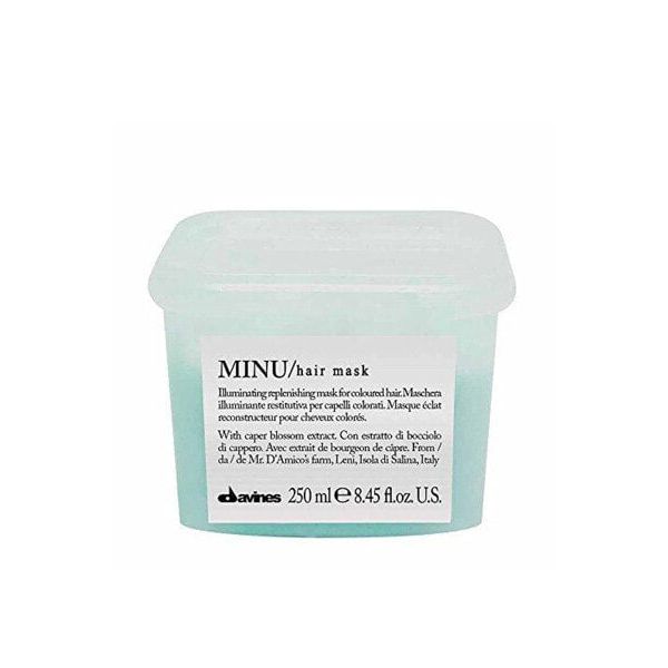 Izgaismojoša un atjaunojoša Davines MINU / maska krāsotiem matiem, kas piešķir papildu spīdumu un barošanu matu dziļākajos slāņos. Sastāvā:. Ar kaperu ziedu ekstraktu. Satur kvercetīnu, iedarbīgu aminoskābi, kas nodrošina matu struktūras aizsardzību apvienojumā ar matu krāsu aizsargājošiem polifenoliem. Lietošana:. Uzklāt matiem, kas nosusināti ar dvieli pēc Davines MINU / šampūna lietošanas. Atstāt uz matiem 10-15 minūtes, izķemmēt, pēc tam izskalot. Var turpināt ar matu ieveidošanu.