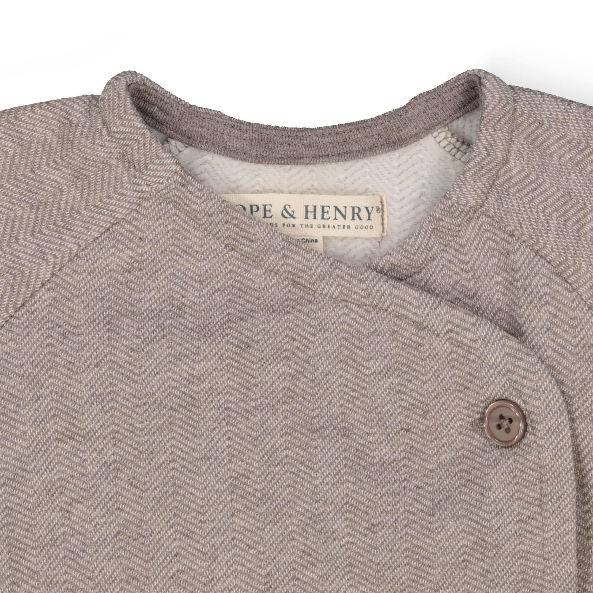 It doesn't get cuter than our coordinating set in soft herringbone jacquard fleece for baby. Features a cozy long sleeve kimono wrap top for ease of dressing baby. A matching legging and pixie bonnet complete the look. The ultimate aww-worthy gift, perfect for a baby girl or boy!