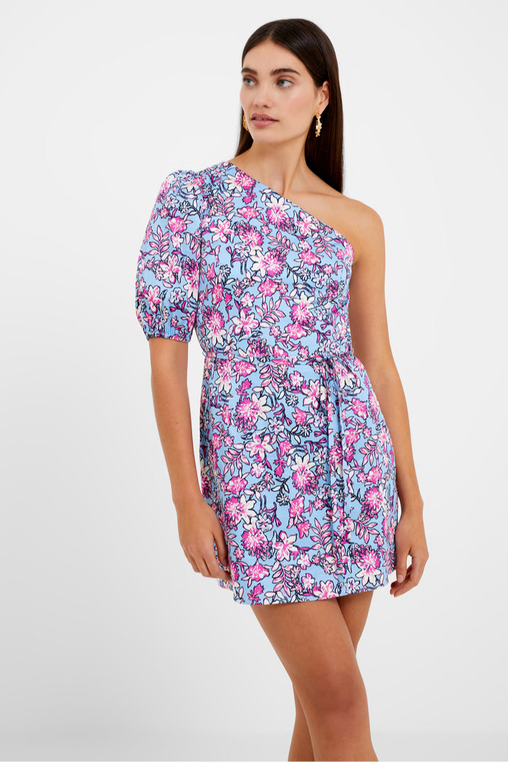 Our Fontini One Shoulder Puff Sleeve Mini Dress is in full bloom. From its bold floral print in bright and beautiful hues to its voluminous asymmetrical silhouette with a single puff sleeve and a self-tie belt, this mini is destined to be in your wardrobe.
