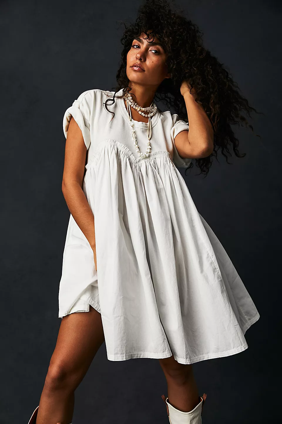 Slip into something slouchy, babydoll-inspired, and oh-so-easy with the Free People Catalina Mini Dress. With a relaxed fit, cuffed sleeves, and effortless pull-on style, this dress is both cool and classic. Sweetheart front detail, defined seaming, and exaggerated pleating add shape. Perfect for pairing with sandals or bold boots.