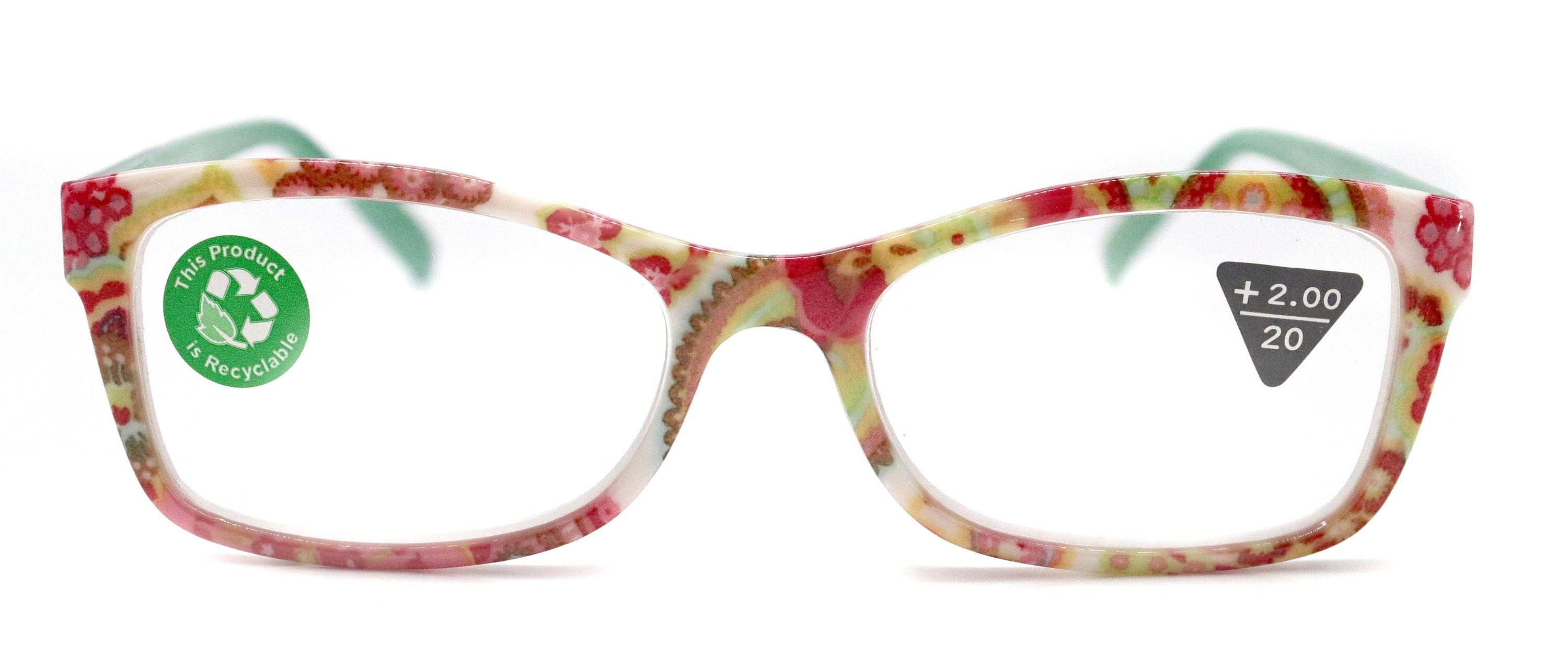 Frida, (Premium) Reading Glasses, High End Readers +1.25 .. +3 magnifying Eyeglasses, Square Optical Frame. (white) Paisley. NY Fifth Avenue
