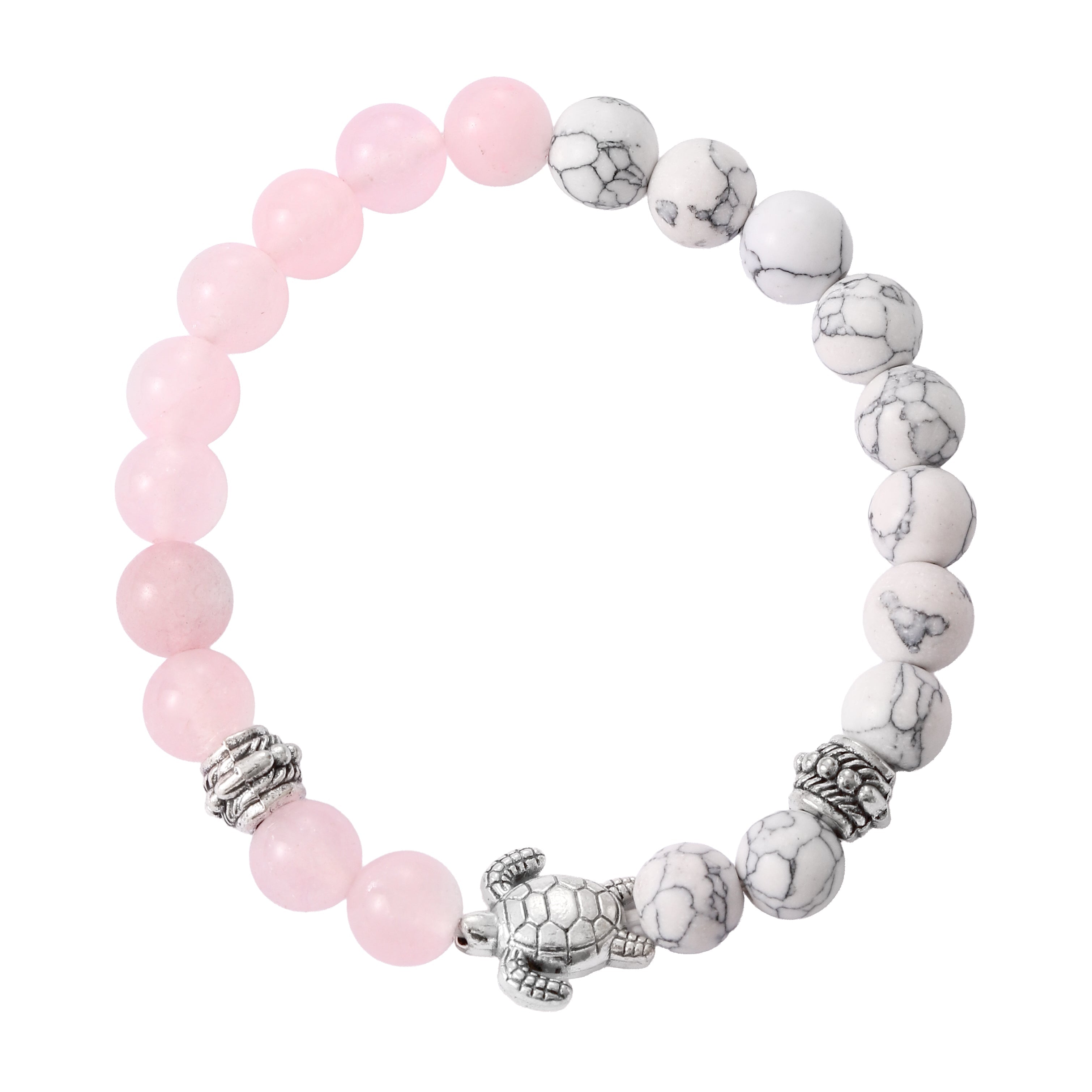 The Genuine Quartz and Turtle Healing Bracelet is a beautiful and meaningful piece of jewelry that combines the natural beauty of quartz stones with the symbolic representation of turtles. The bracelet is made up of small, polished quartz beads that have a soft and luminous glow, giving it a gentle and calming appearance.