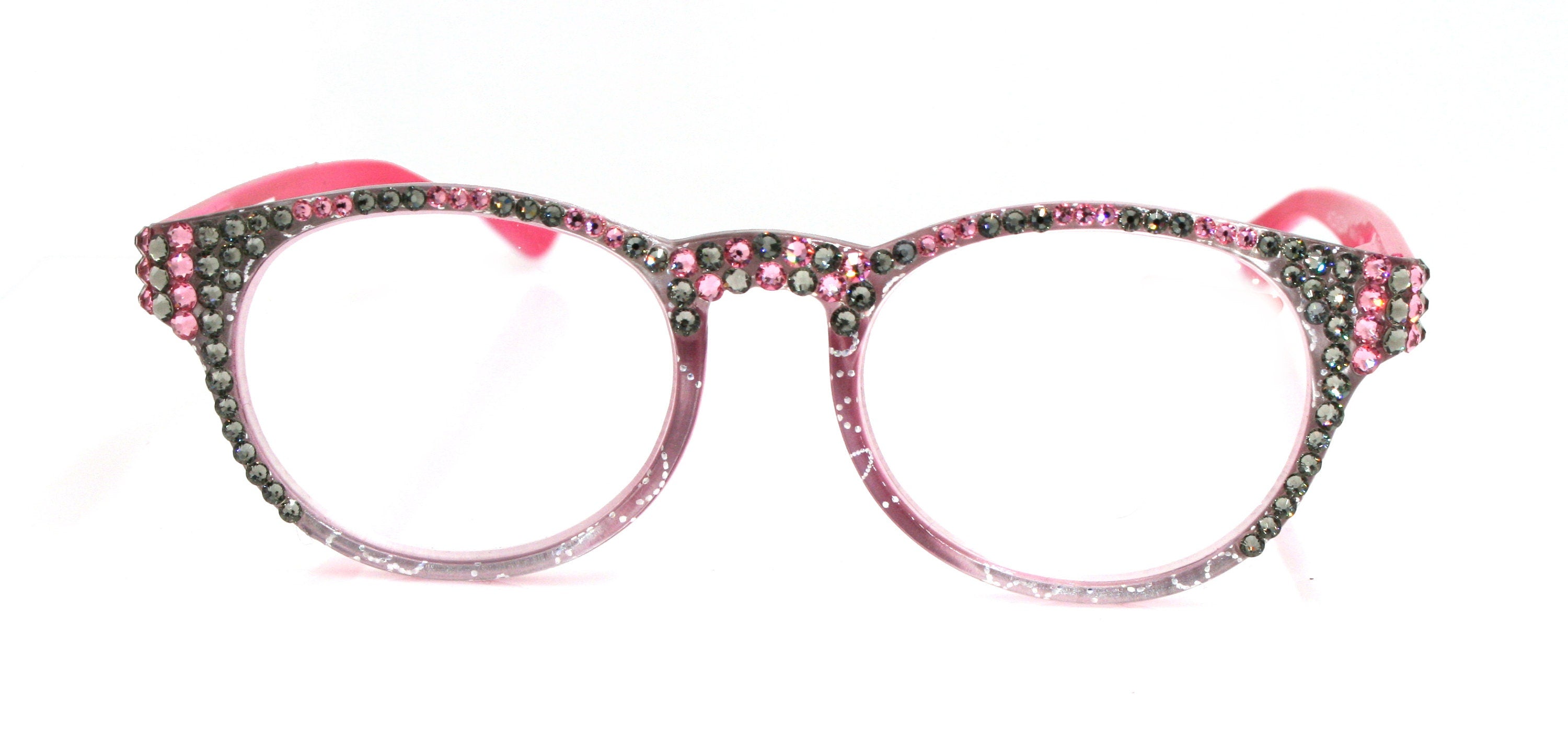 Grace, (Bling) Reading Glasses 4 Women W (Rose, Black Diamond) Genuine European Crystals (Metallic Silver, Pink) Round NY Fifth Avenue