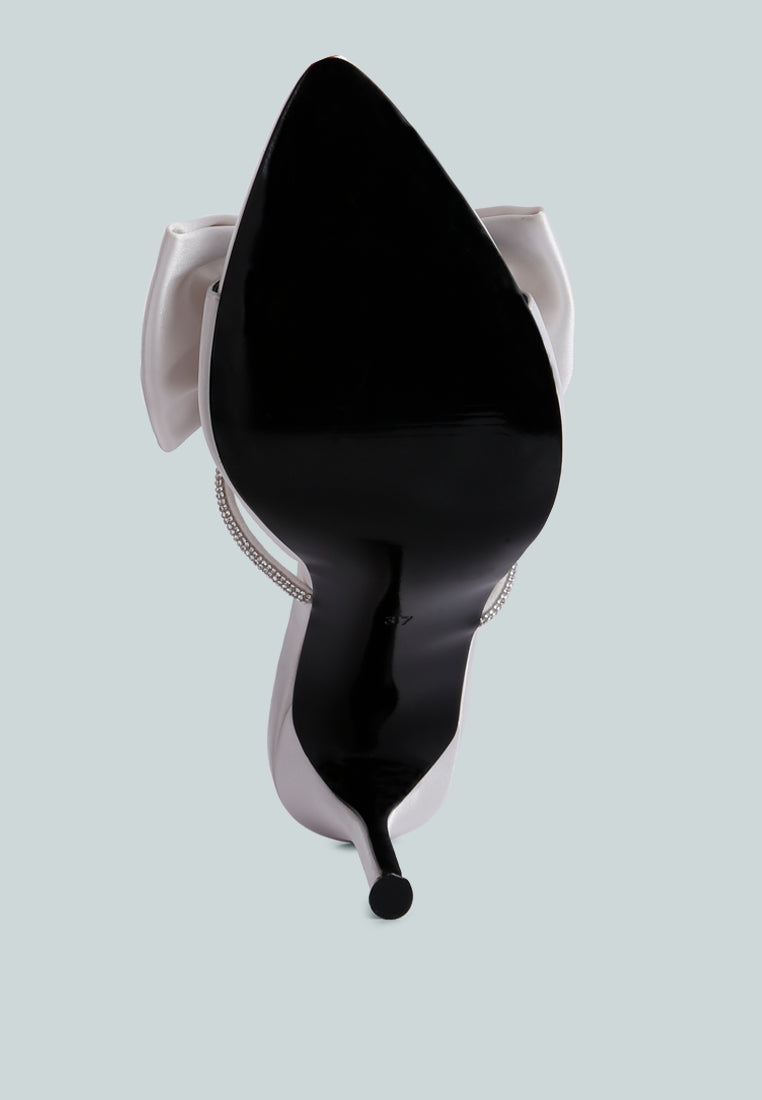 Get ready to dazzle in our rhinestone-studded sandals! These stunners feature a rhinestone-embellished strap, topped off with a satin bow that's nothing short of beautiful. With elegant satin stiletto heels that are not just gorgeous – but bridal heel perfection, adding sophistication to your big day. And guess what? The light cushion insole ensures you'll be walking comfortably in style!