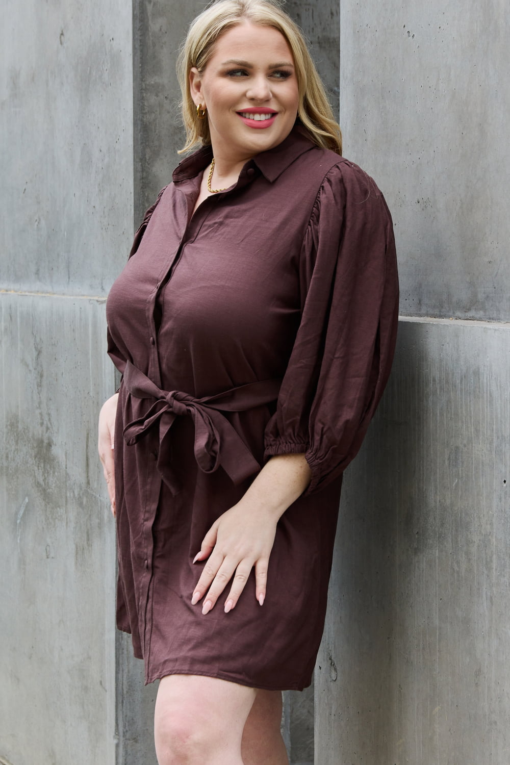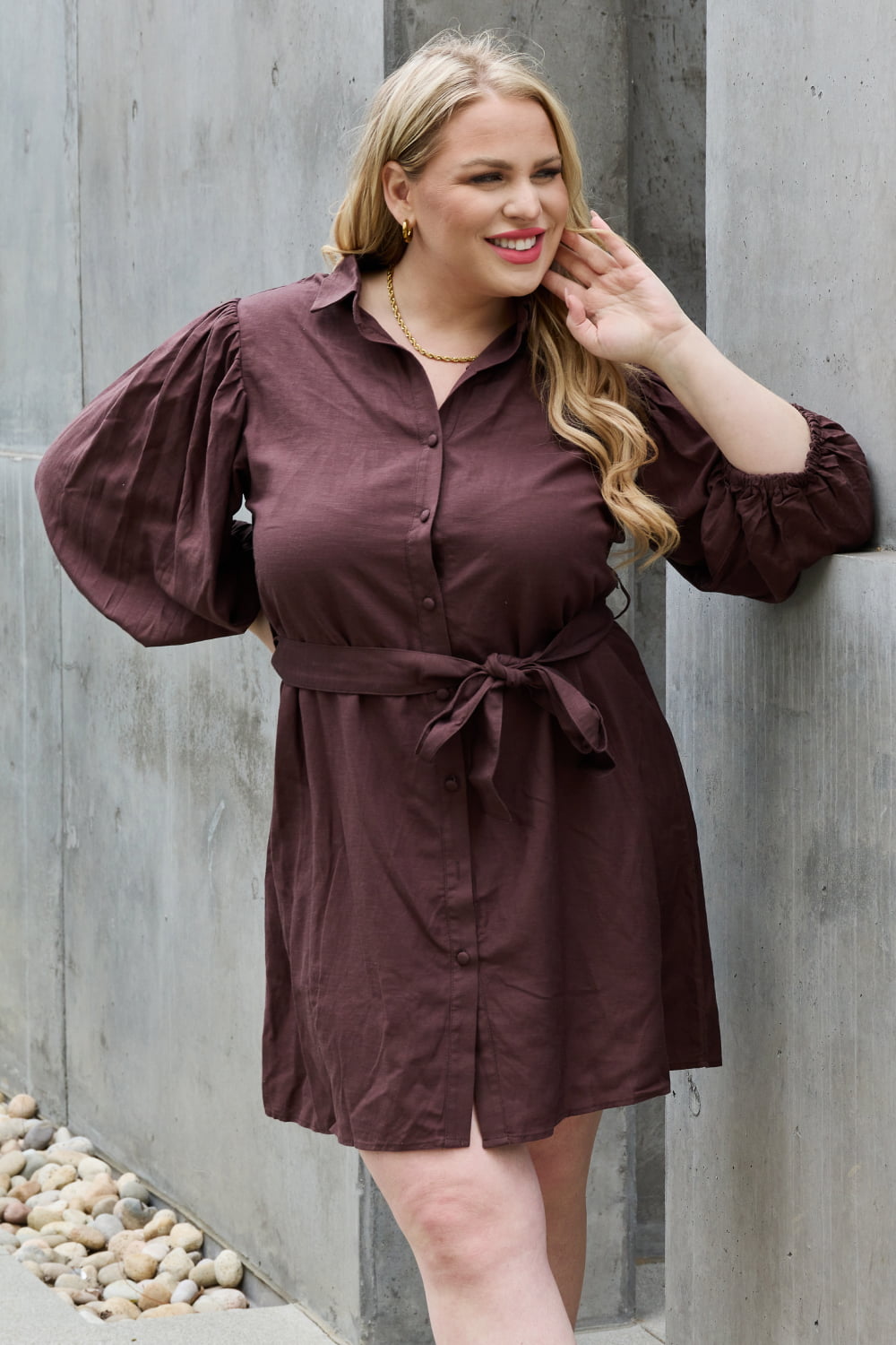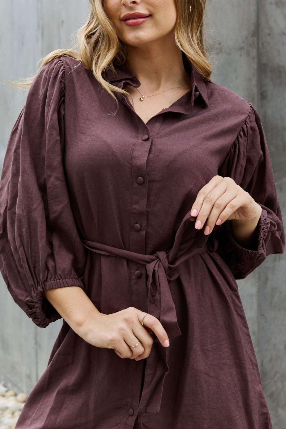 This dress combines the timeless appeal of a button-down design with the trendy accents of a belted waist and charming balloon sleeves, making it a must-have addition to your wardrobe. Crafted with care and attention to detail, this dress exudes sophistication and versatility. The button-down front allows for easy wearing and provides a touch of classic appeal, while the belted waist cinches in at the right places, creating a flattering silhouette that accentuates your curves. The standout feature of this dress is the balloon sleeves, adding a touch of whimsy and playfulness to your ensemble. The voluminous sleeves create a beautiful contrast to the fitted bodice, making a fashion-forward statement wherever you go. Not only is this dress stylish, but it also prioritizes comfort. Made from high-quality and breathable fabric, it ensures a pleasant wearing experience, allowing you to stay cool and confident all day long. The half sleeves provide just the right amount of coverage, making it suitable for various occasions and seasons.
