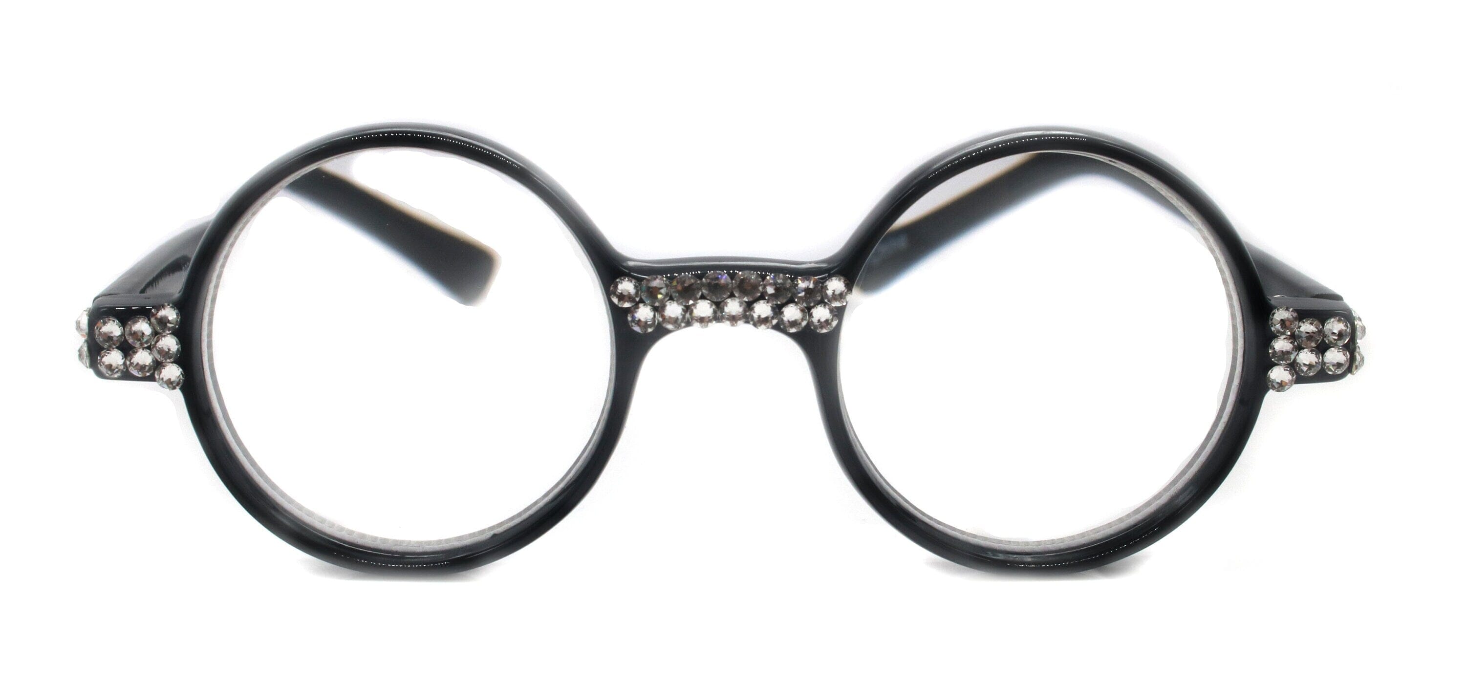 Janis, (Bling) Round Reading Glasses 4 Women Adorned W (Clear) Genuine European Crystals, Round Circle Shape +1.25.+3 Reader NY Fifth Avenue