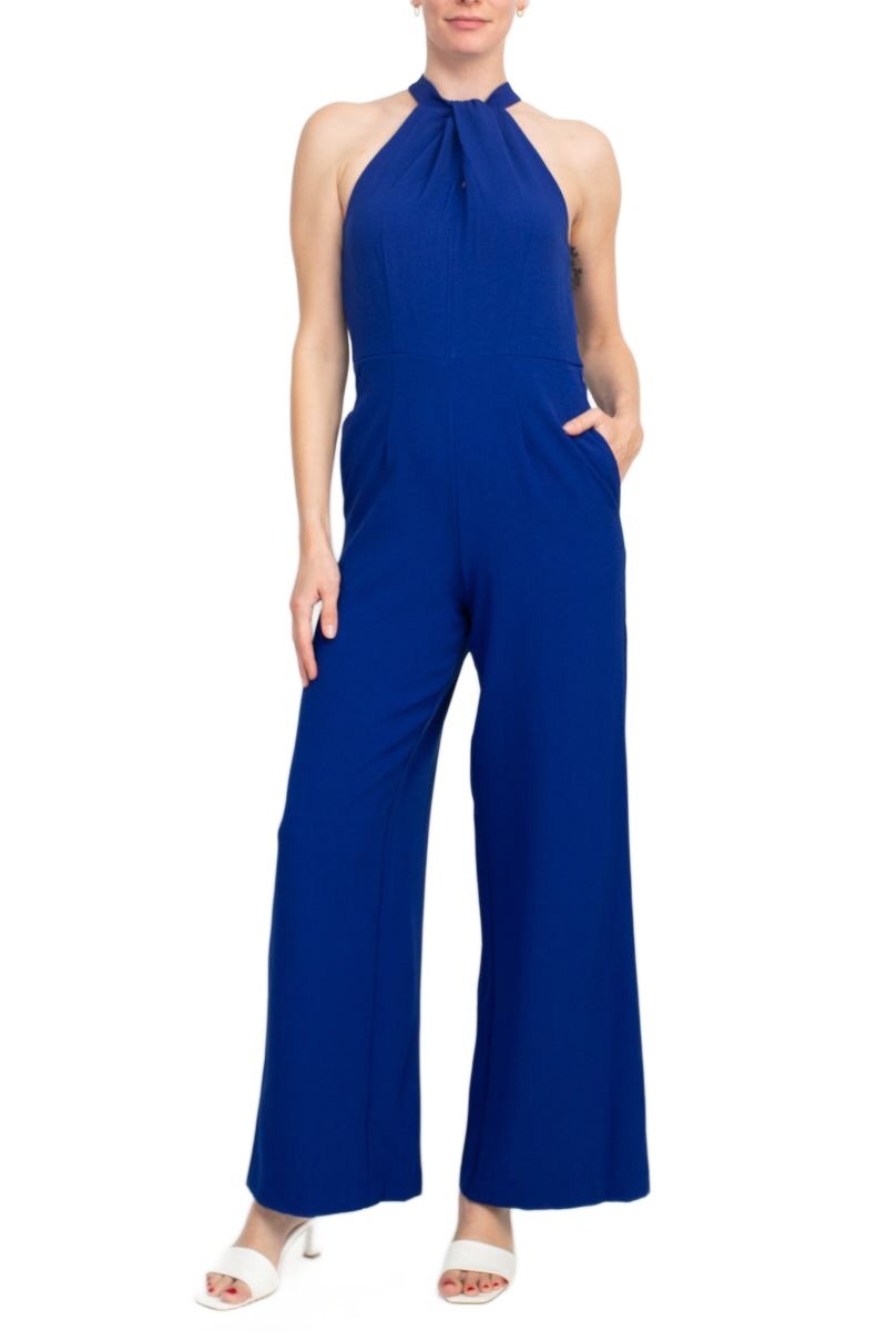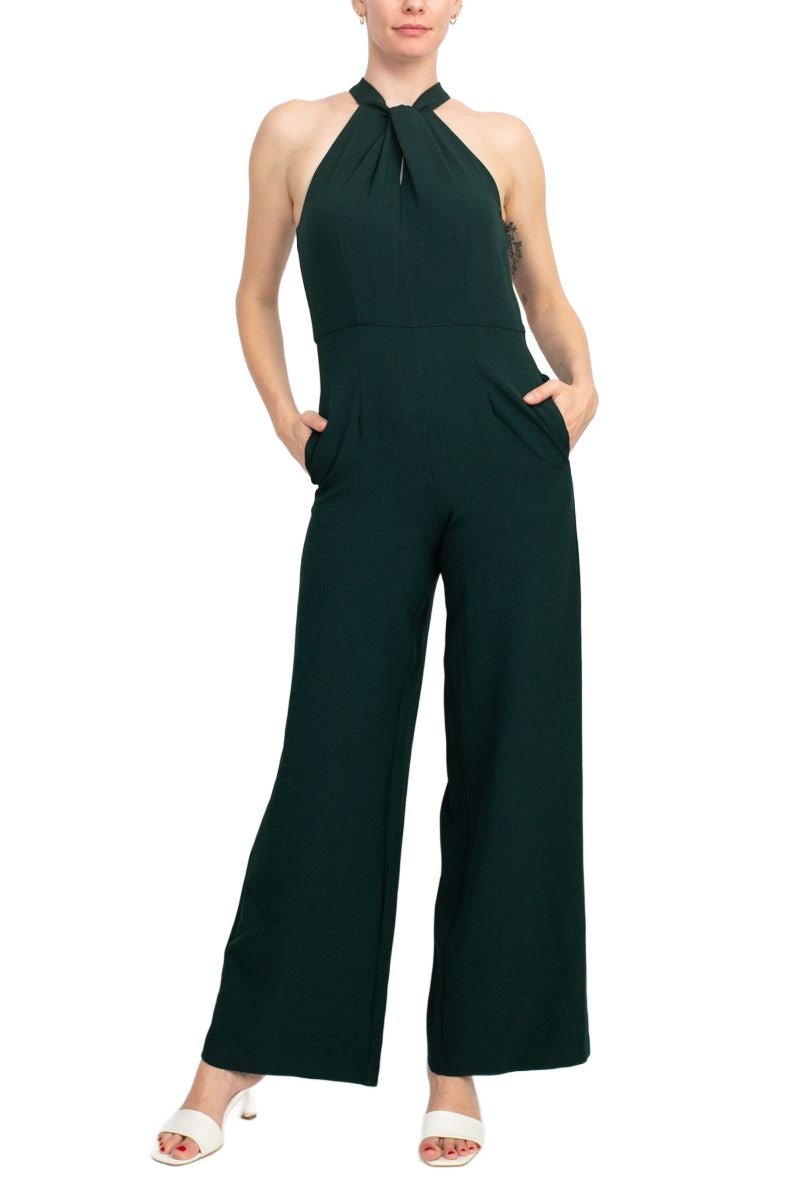 Julia Jordan Crossed Neck Keyhole Racerback Solid Crepe Jumpsuit