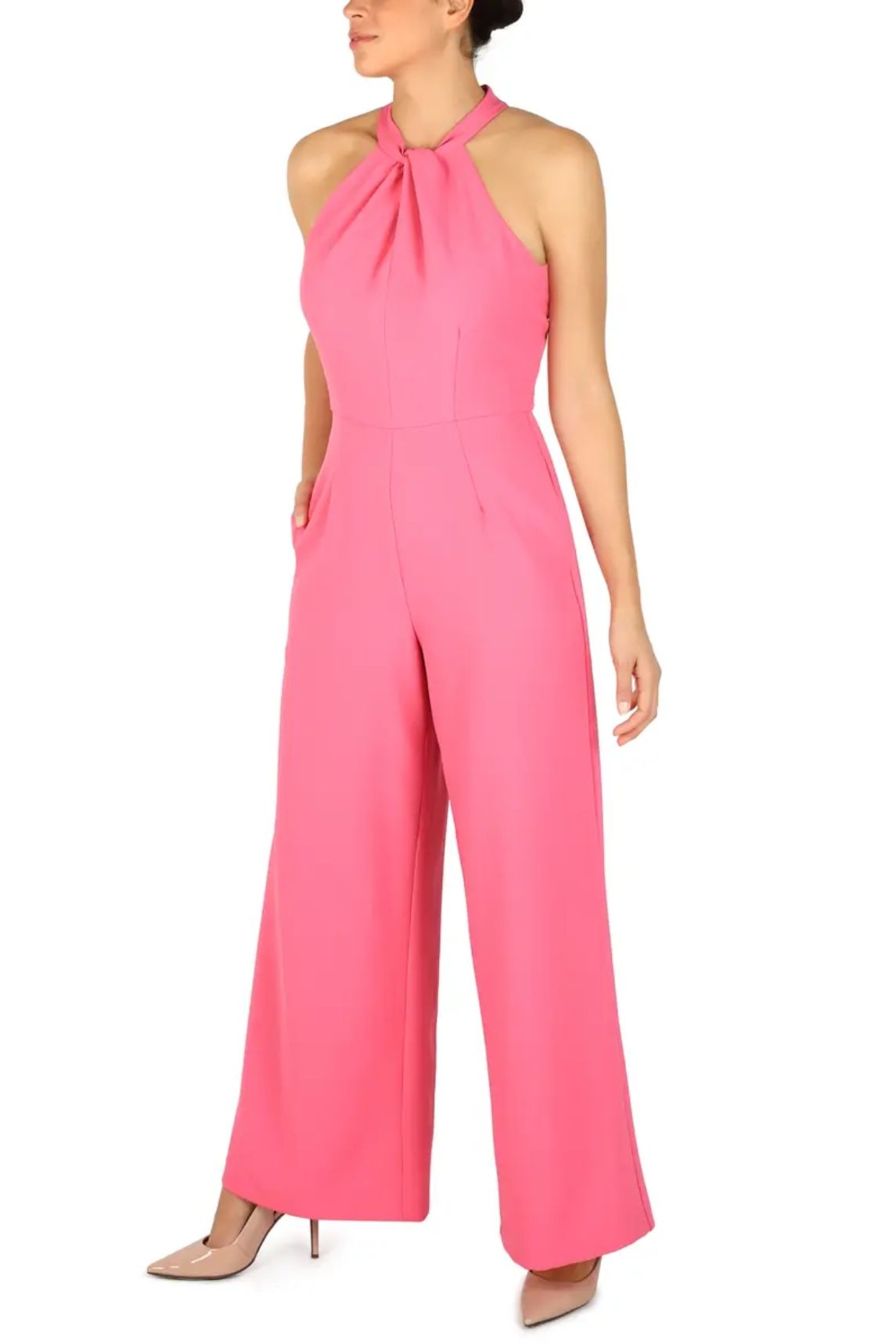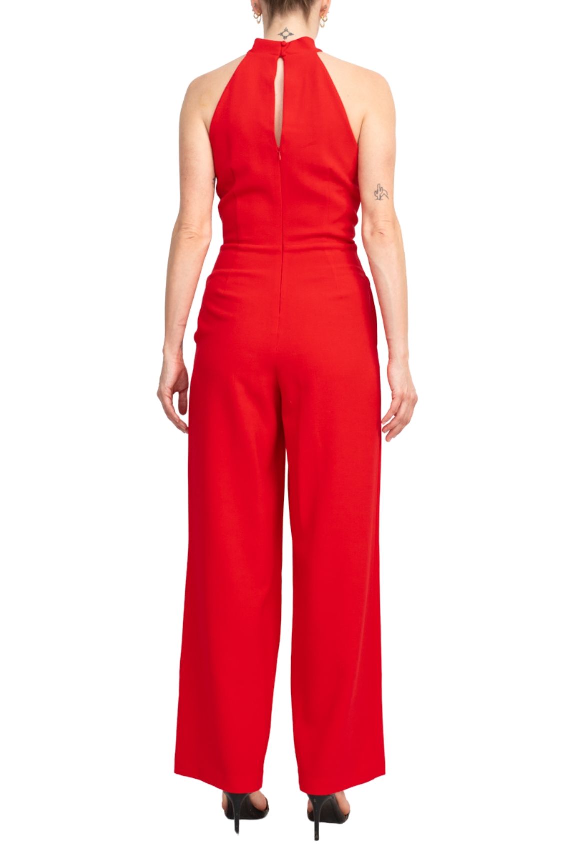 Elevate your style with the Julia Jordan Crossed Neck Keyhole Racerback Jumpsuit, a sophisticated and versatile piece designed to make a statement. Crafted from premium Crepe fabric (97% Polyester, 3% Spandex), this jumpsuit offers both comfort and elegance. The unique crossed neck and keyhole design add a touch of flair, while the racerback detail exudes a hint of sporty chic. Perfect for a night out or a special event, this jumpsuit effortlessly transitions from day to night with grace and ease.