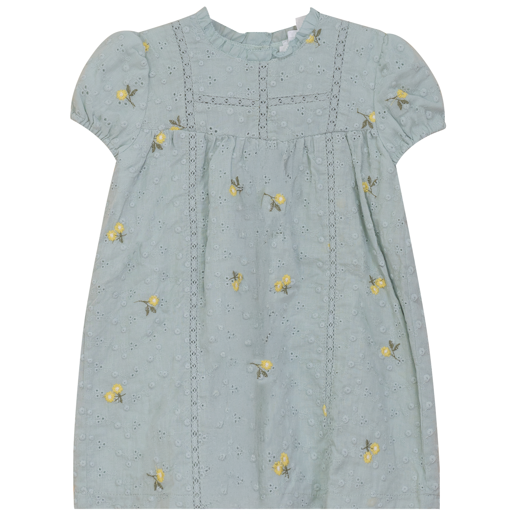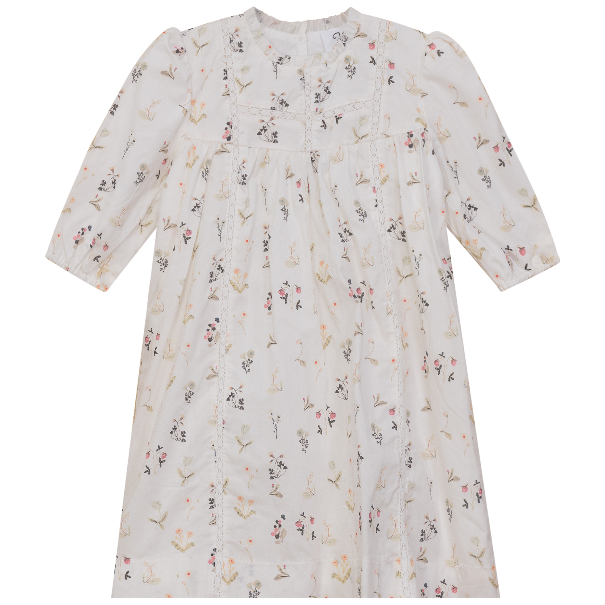 Girls woven cotton flower print dress with buttons at center back, ruffle collar and elastic at arms opening.3/4 sleeves from size 5 and up. ֲ