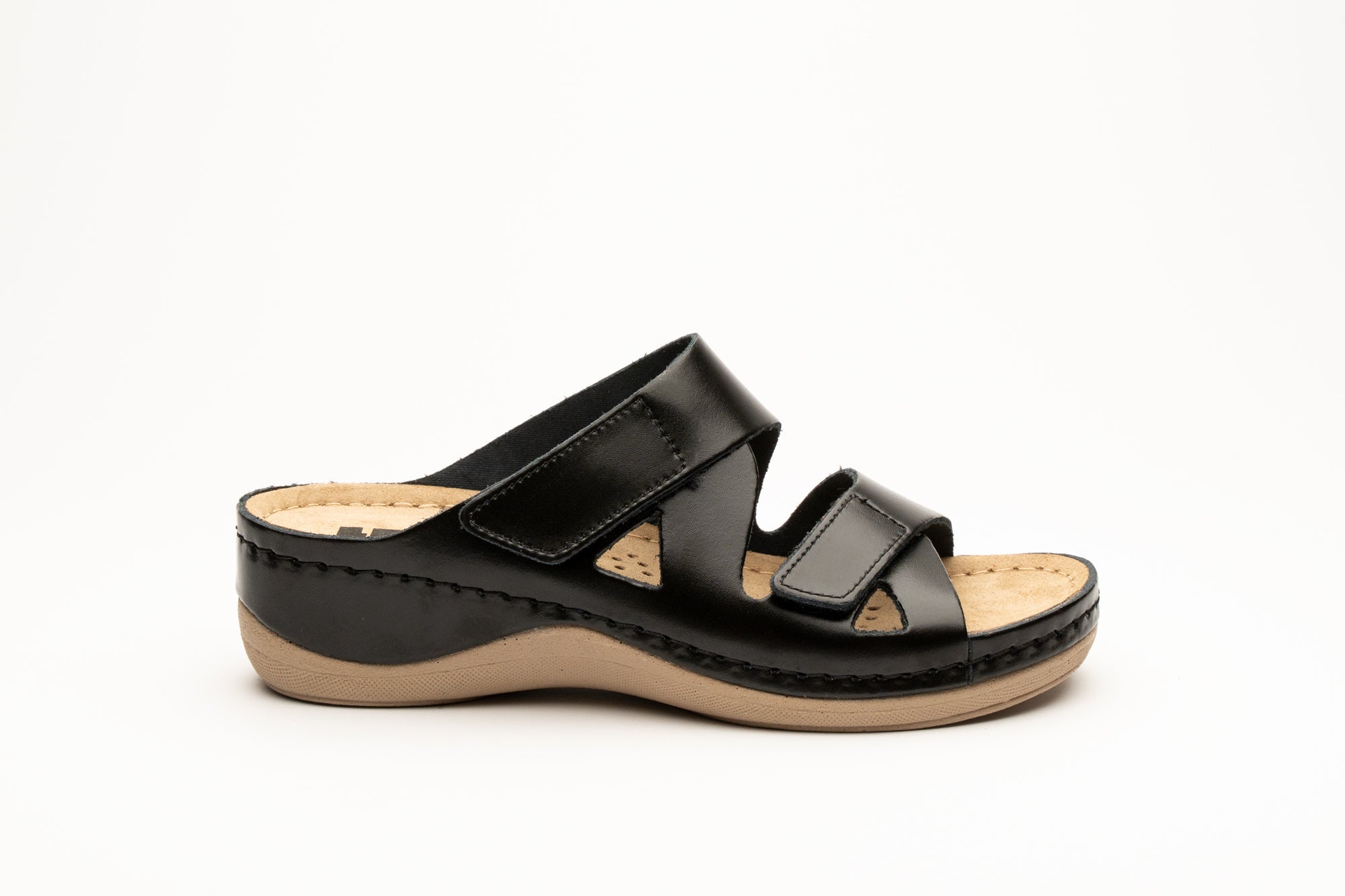 The Laura by LEON is a timeless orthopedic slide sandal designed for comfort lovers who won’t compromise on style. Featuring smooth leather, breathable perforated insole lining, and dual adjustable Velcro straps, this sandal delivers a customized fit for every step.