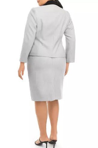 Elevate your career wardrobe with the Le Suit Jacquard Two-Button Patch Pocket Jacket and Slim Skirt Set, specially designed for plus sizes. This ensemble exudes timeless elegance and sophisticated charm, making it perfect for career settings, church gatherings, and daytime receptions.