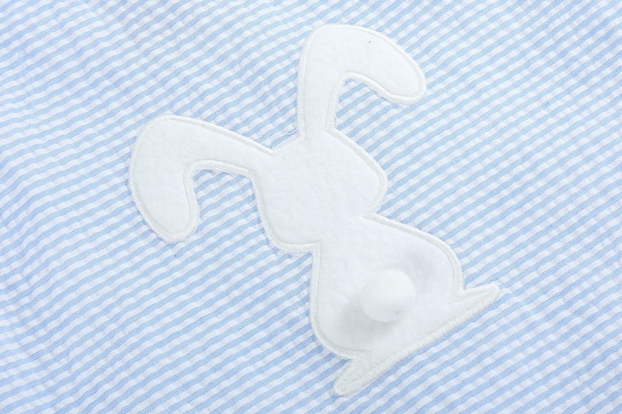 Delight your little one with our adorable Fuzzy Bunny Dress. This charming dress features an endearing fuzzy bunny with a playful pompom tail, adding a whimsical touch she'll love. The crisp white trim and matching buttons provide a classic and polished look. Perfect for any occasion, this dress combines sweetness and style for your little girl.