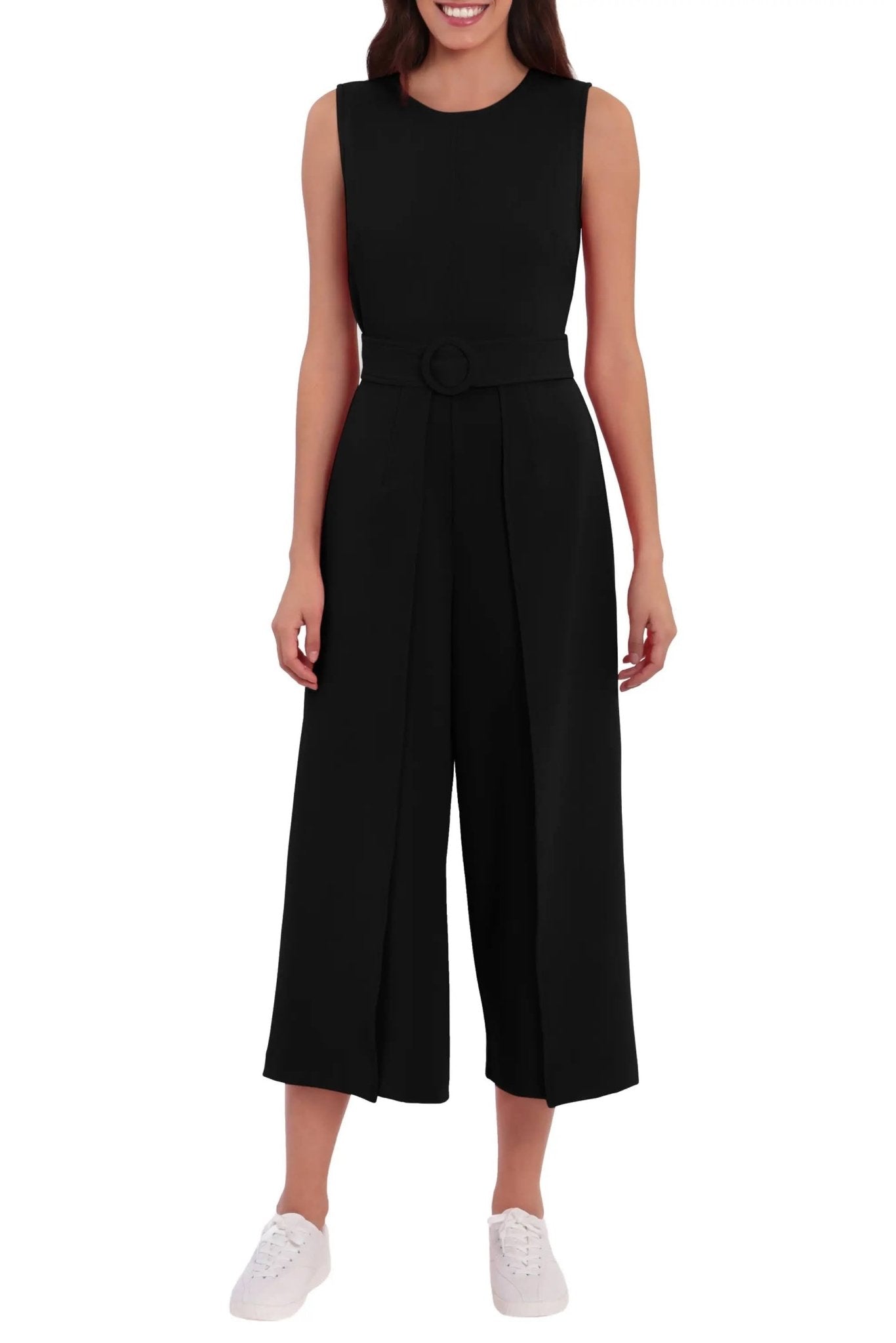 Experience timeless elegance in this luxurious London Times jumpsuit, tailored from stretch crepe with a flattering wide-leg silhouette, a crew neckline, and a belted waist. Its impeccable craftsmanship and classic details make it the epitome of modern sophistication.
