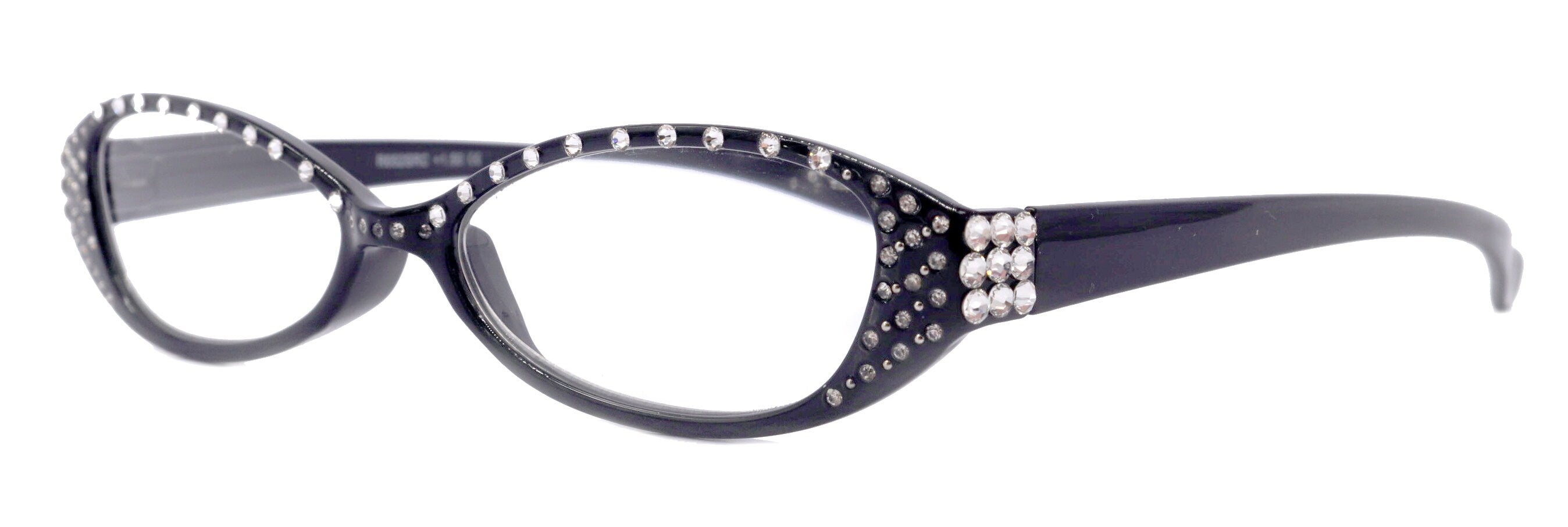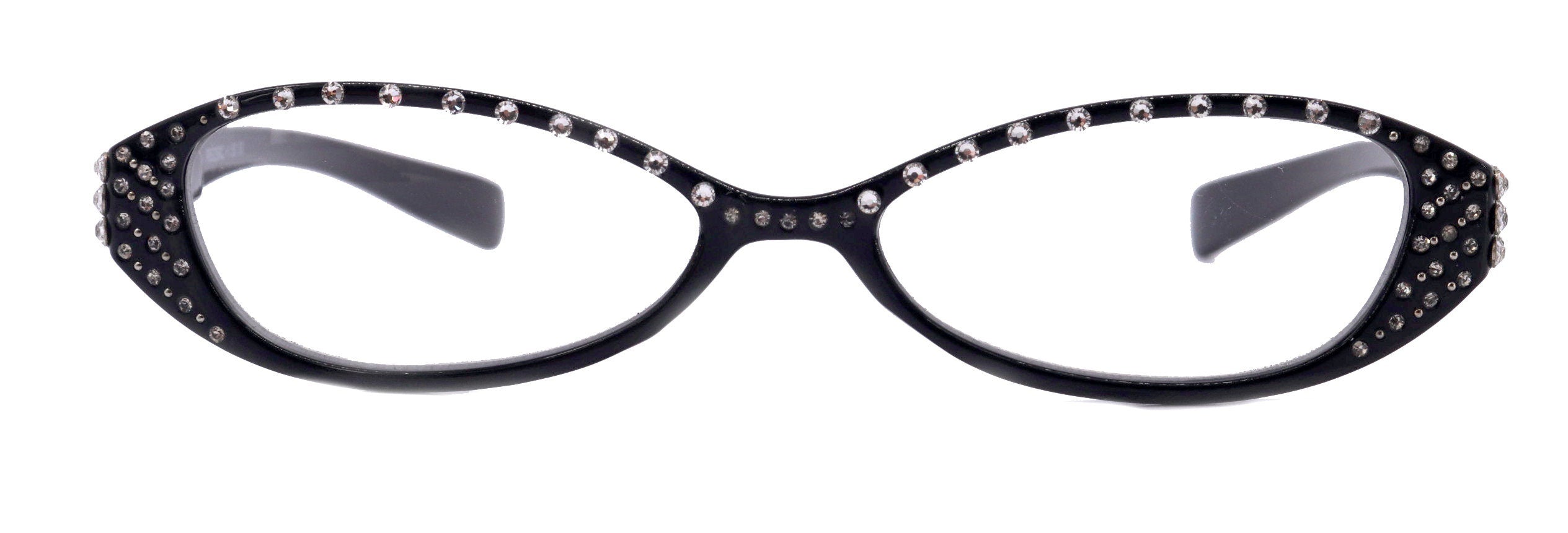 Lucky, (Bling) Women Reading Glasses W (Clear) Genuine European Crystals, Magnifying, Cat Eyes (Black) Cat eye NY Fifth Avenue