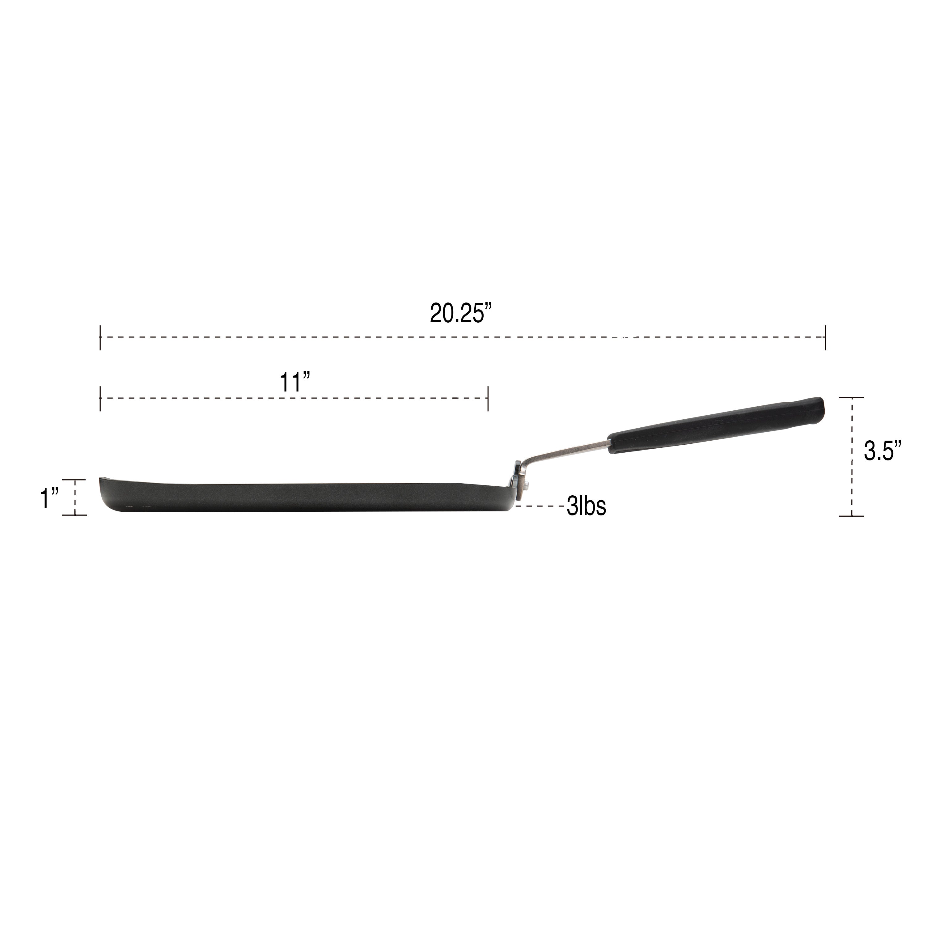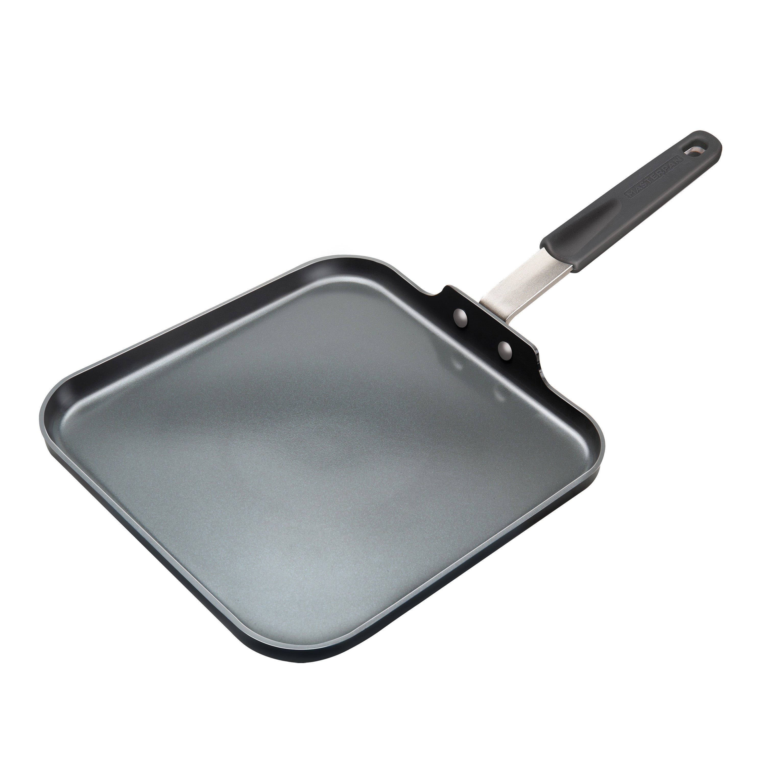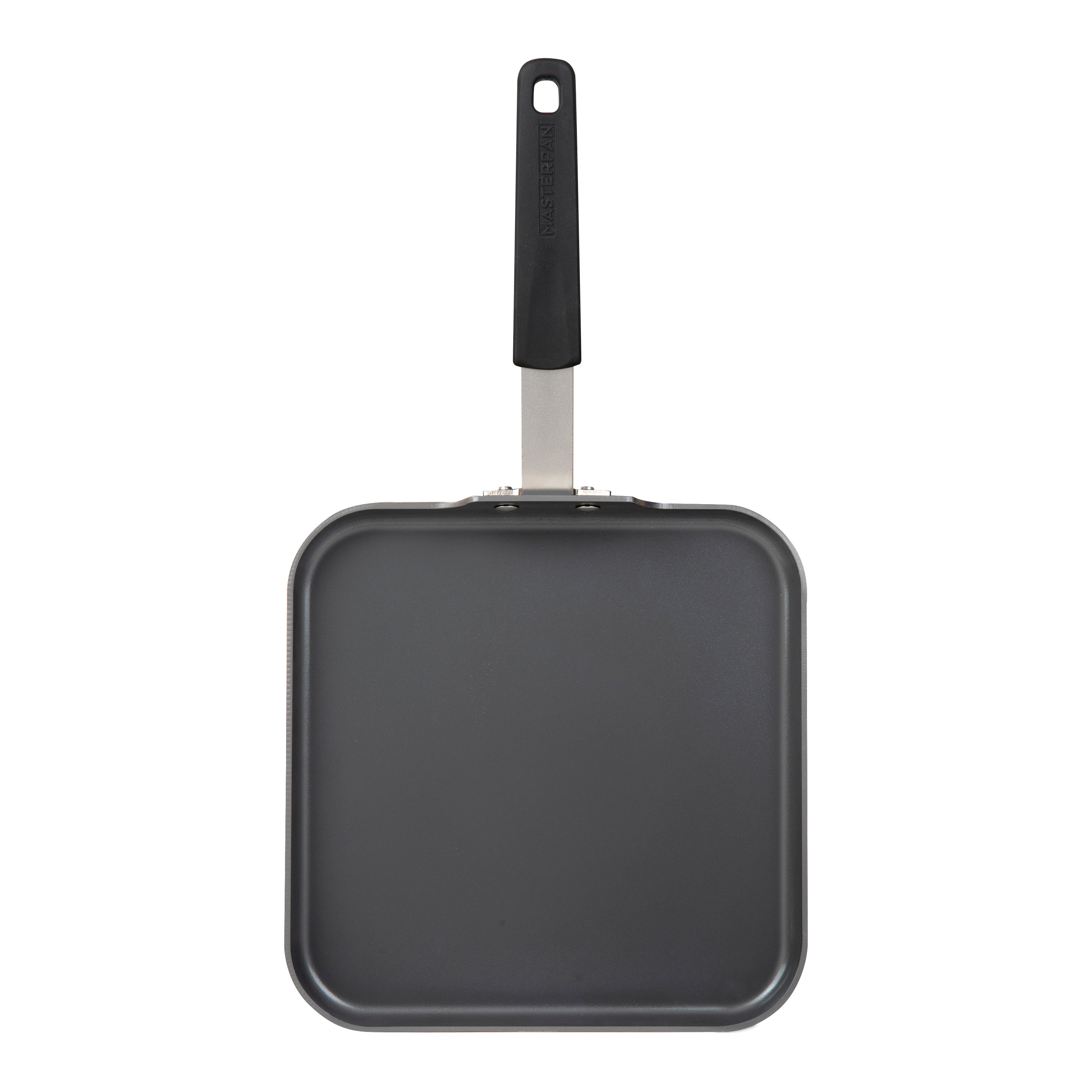 The MASTERPAN 11" (28cm) Griddle Pancake Pan is a must have for any kitchen and is crafted from cast aluminum with a riveted stainless steel handle and removeable silicone handle cover, and then finished with a premium ceramic non-stick coating. It has a perfect flat surface and low walls for easy access but still prevent any spillage when frying, making it the ideal pan for crepes, pancakes, tortillas, rotis, eggs, quesadillas, and much more. The sleek style and ultra durability fulfills all your cooking desires. Part of our Chef’s Series, the pan boasts a streamlined look with a smooth, hard surface and stainless steel handle making it an ideal addition to any kitchen and your cooking needs. Cookware that is guaranteed to perform as amazing as it looks! Riveted handle provides added support and removable, silicone handle cover is versatile for using in and out of the oven.