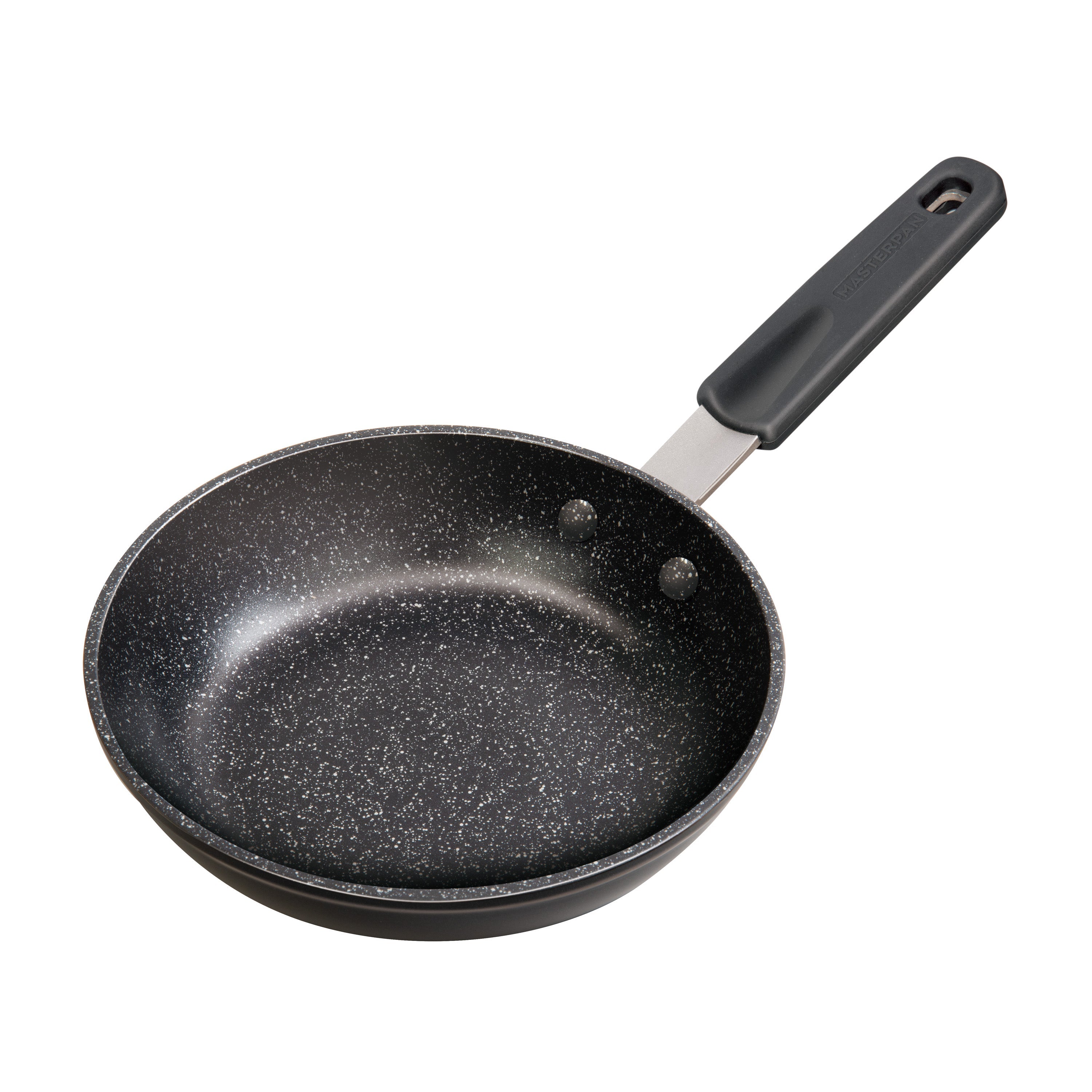 The MASTERPAN 8" (20cm) Fry Pan & Skillet is a must have for any kitchen and is crafted from cast aluminum with a riveted stainless steel handle with removeable silicone handle cover, and then finished with a premium ceramic reinforced non-stick coating. It has deep 2” sides that reduces easy spillage and splatter when frying, making it the idealpan for stir frys, crepes, pancakes, eggs, quesadillas, and much more. The sleek style and ultra durability fulfills all your cooking desires. Part of our Chef’s Series, the pan boasts a smooth, hard surface with a streamlined noble granite look making it an ideal addition to any kitchen and your cooking needs. Riveted handle provides added support and comfort while the removable silicone handle cover allows for versatility while using in and out of the oven. Cookware that is guaranteed to perform as amazing as it looks and make you feel like a chef!