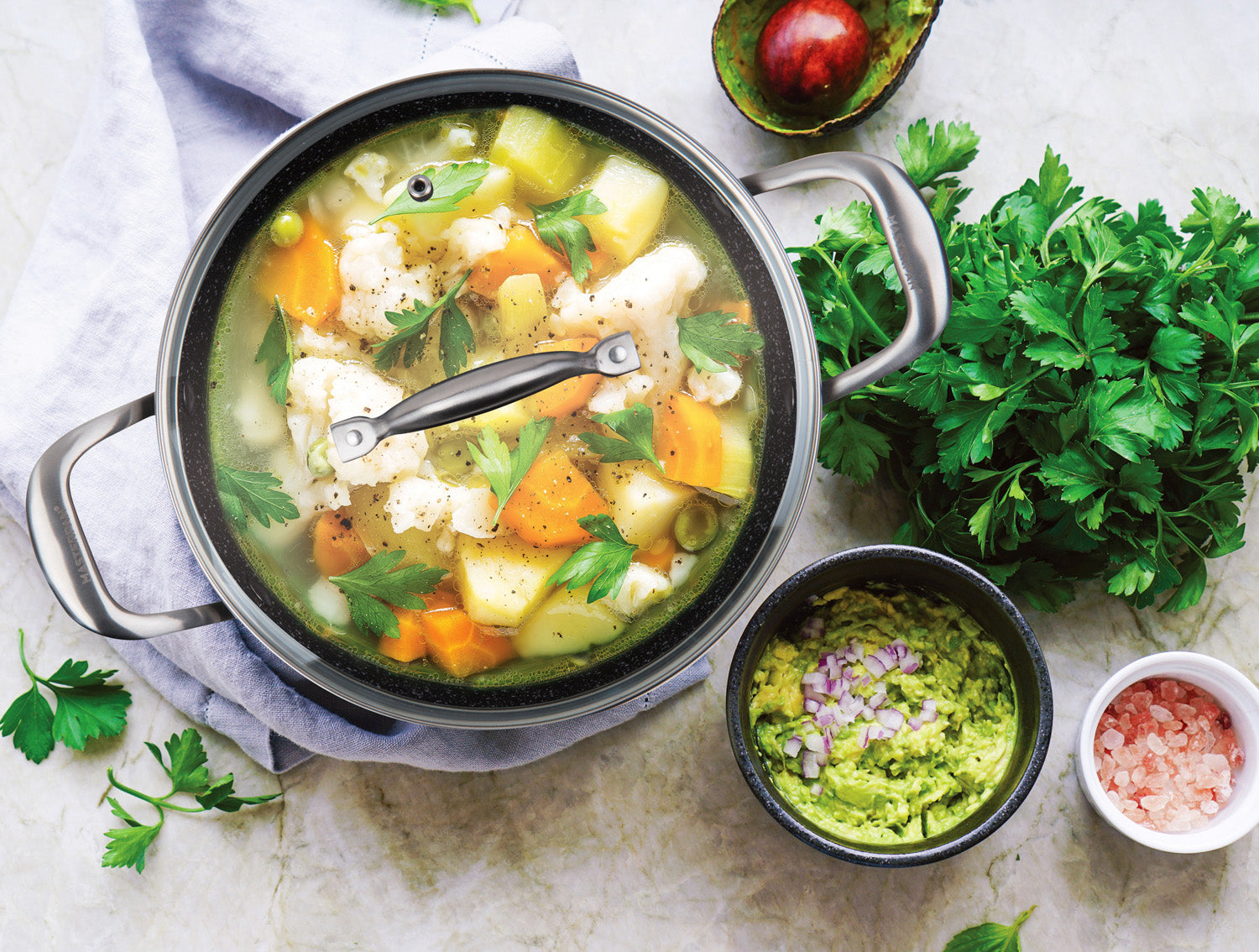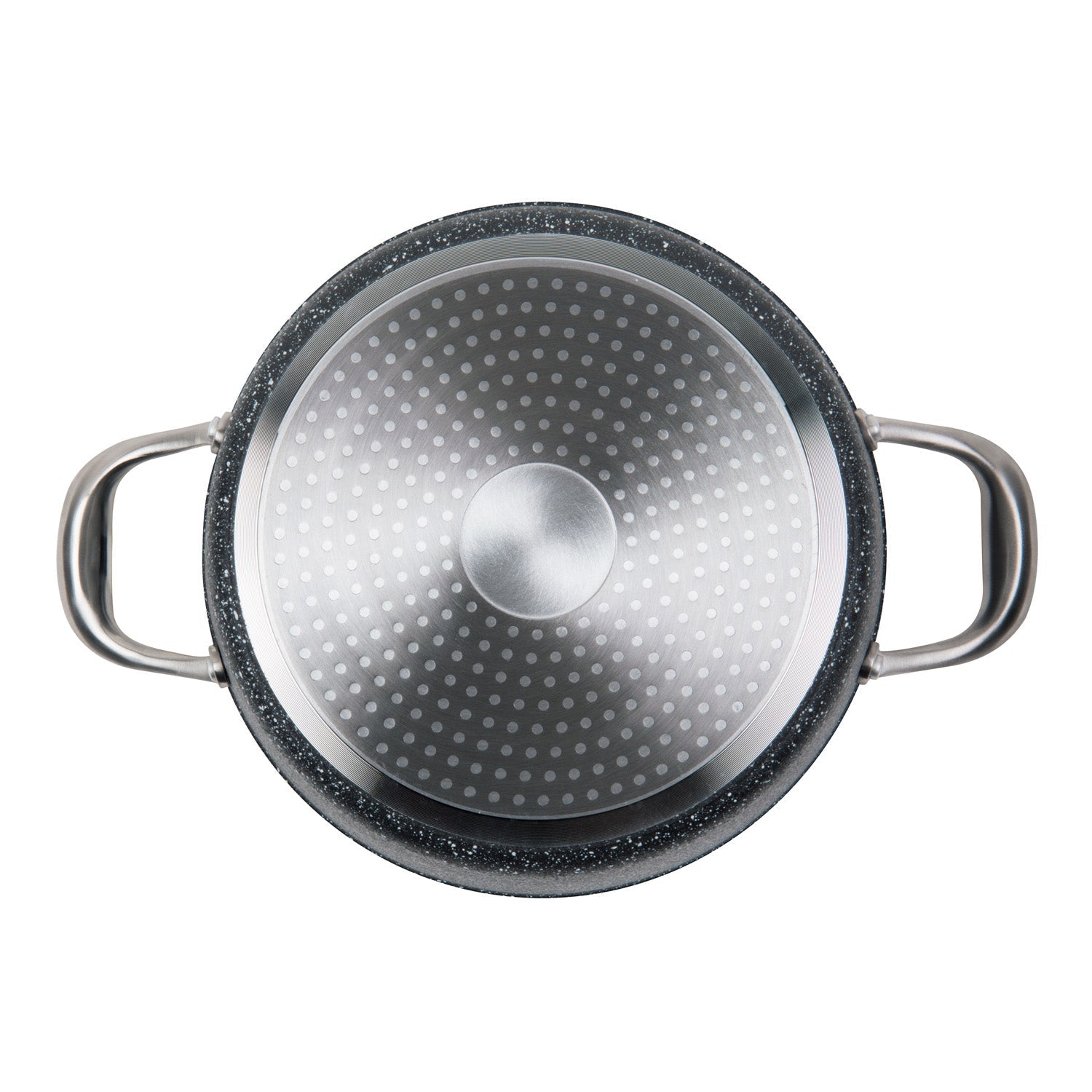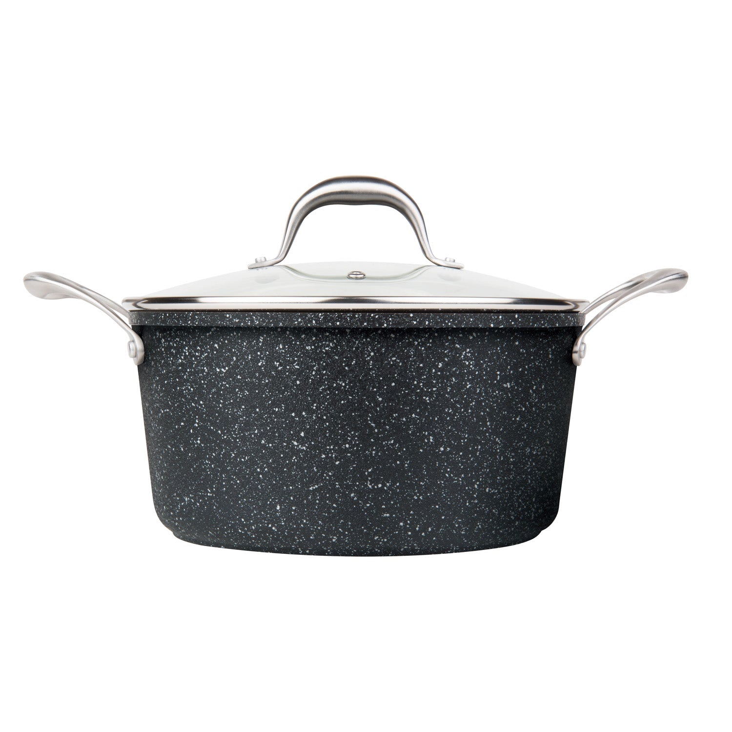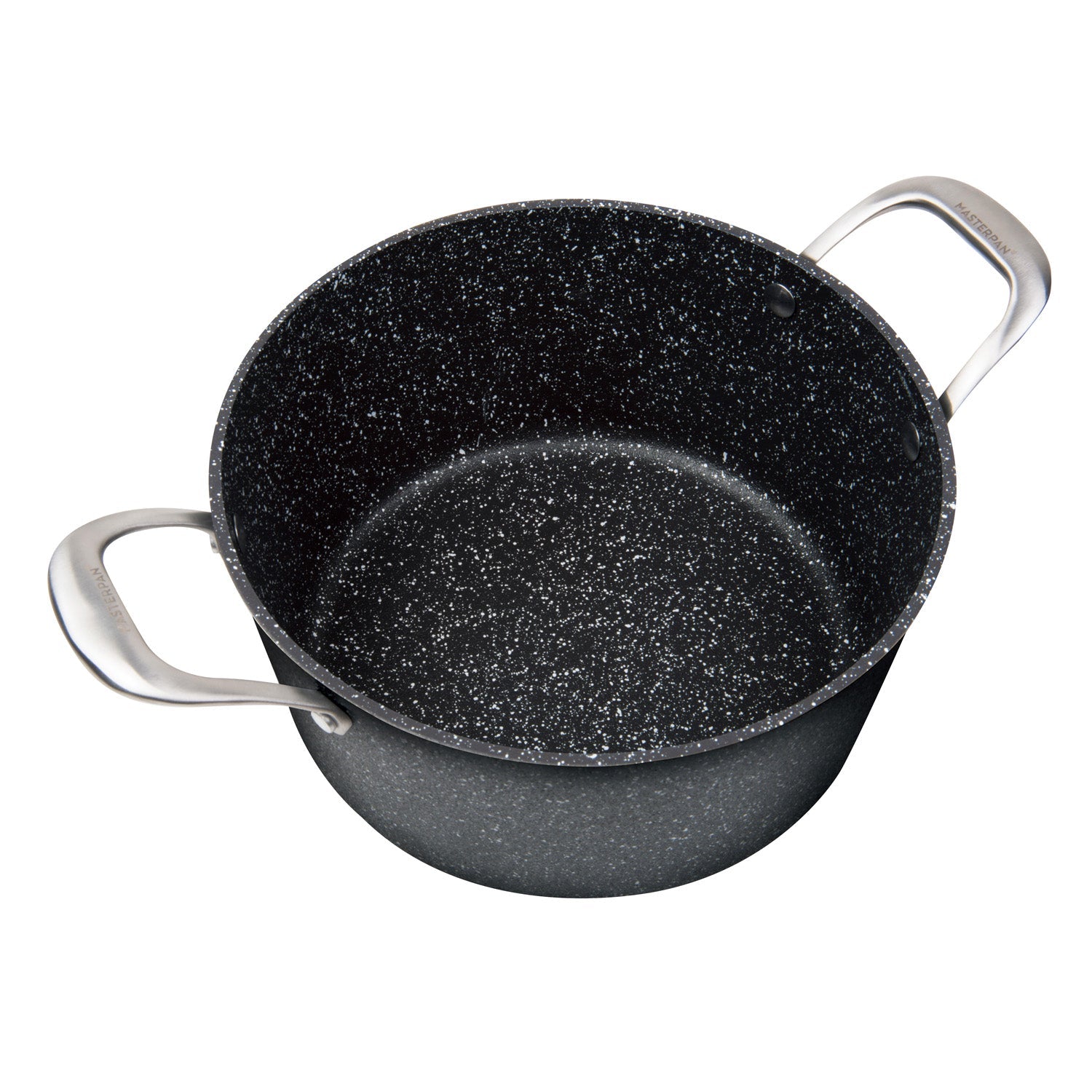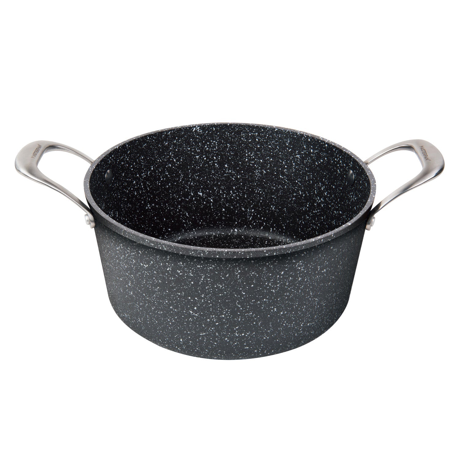 The MASTERPAN  5 QT. (9.5”) Non-Stick cast aluminum Stock Pot comes with a top quality 2-layer ultra non-stick coating that is PFOA, lead, cadmium, and heavy metal free, which will last far longer than your conventional non-stick cookware, and can be used on any heat source including induction stove tops. As part of our Granite Series, the pan boasts a streamlined black-grey granite stone look inside and out. This non-stick stock pot is ideal for stirring up a batch of grandma’s famously delicious homemade pasta sauce, and the best part is, the clean-up will be painless. The heavy gauge base is designed to distribute heat evenly throughout the pan for amazing results even when browning foods. The sturdy and ergonomic stainless steel handles allows this pan to be dishwasher safe.  Extra durability and sleek style characterize its top quality making this stock pot a versatile, practical, and attractive addition to any kitchen, and is deal for stirring up a batch of hearty soup, stew, or your legendary crowd-pleasing chili.
