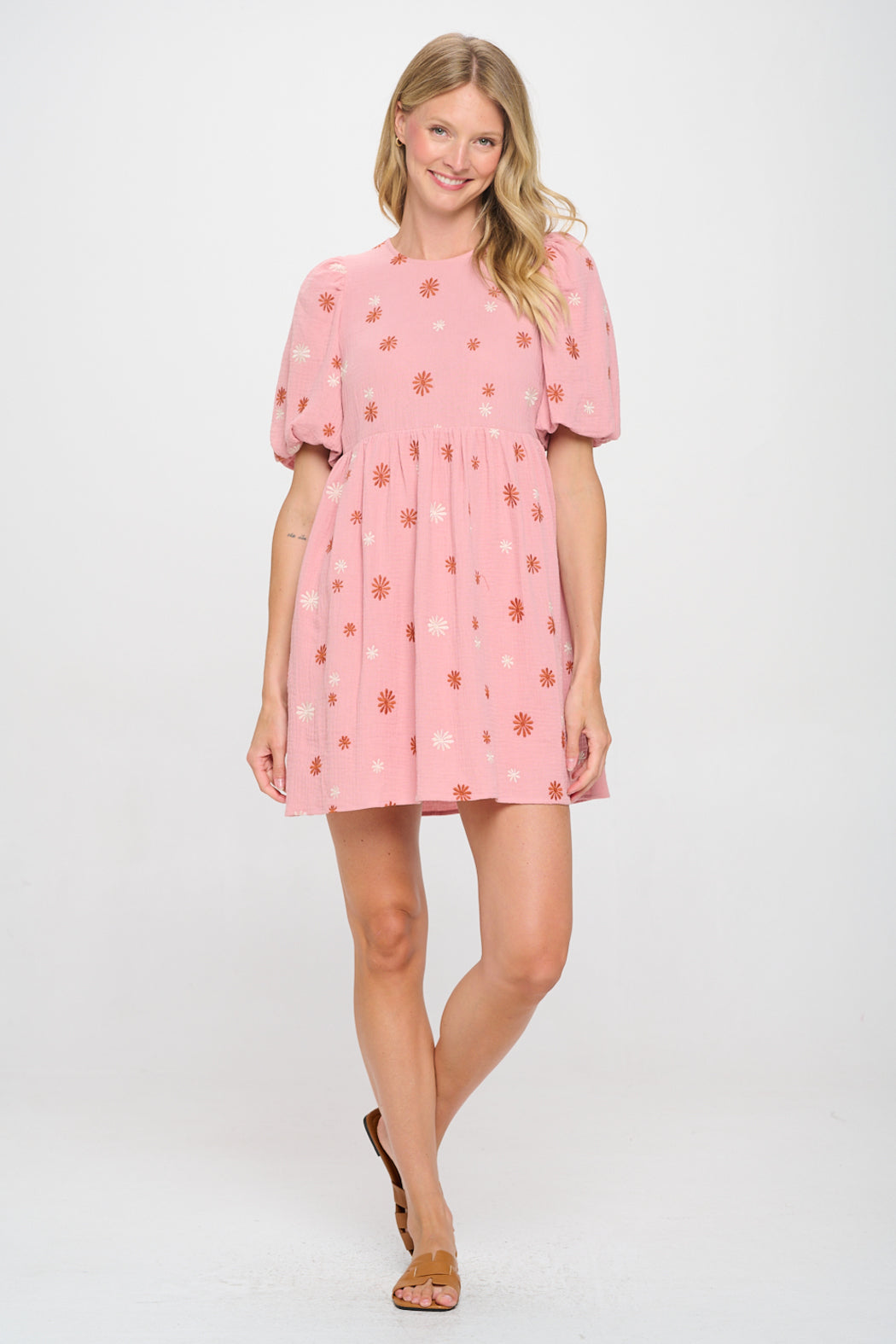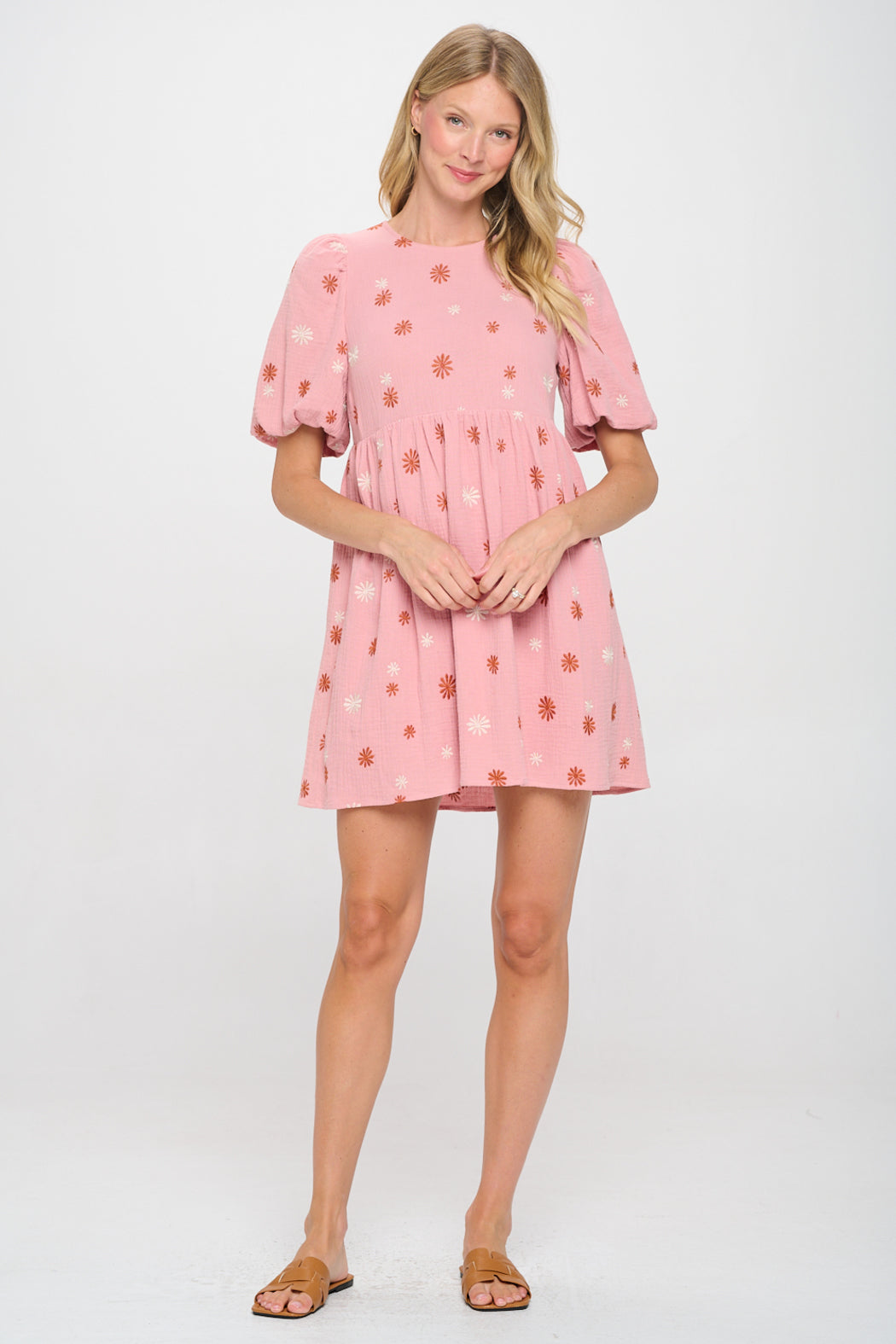 Discover the charm of effortless elegance with Meet Me in Santorini's pink floral embroidered dress. Perfect for a sunny day out or a casual brunch, this dress features delicate daisy embroidery on soft, breathable fabric. The puff sleeves add a touch of vintage flair, while the relaxed fit ensures comfort and style. Ideal for retailers seeking contemporary women's fashion that blends classic elements with modern trends. Elevate your boutique's collection with this must-have piece from Meet Me in Santorini.