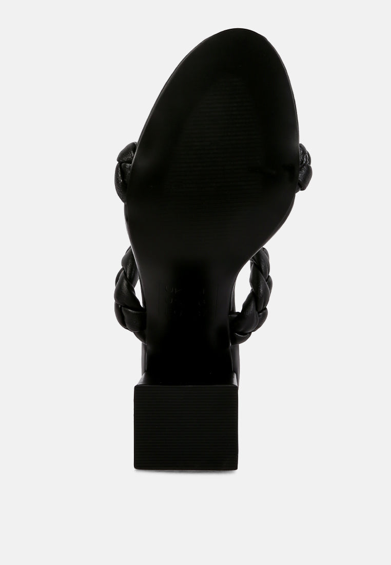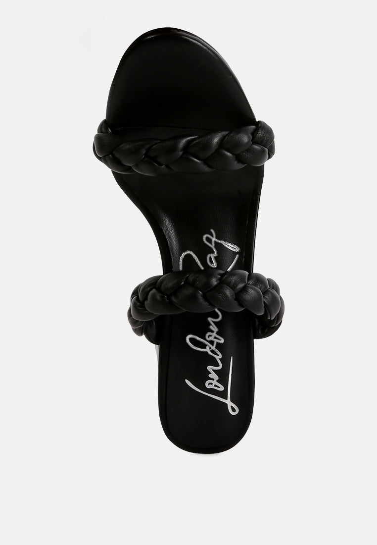 Introducing our high block-heeled braided sandals with a lightly cushioned insole. These stylish open-toe slider sandals are in vogue this season and serve as the perfect all-day casual footwear option.