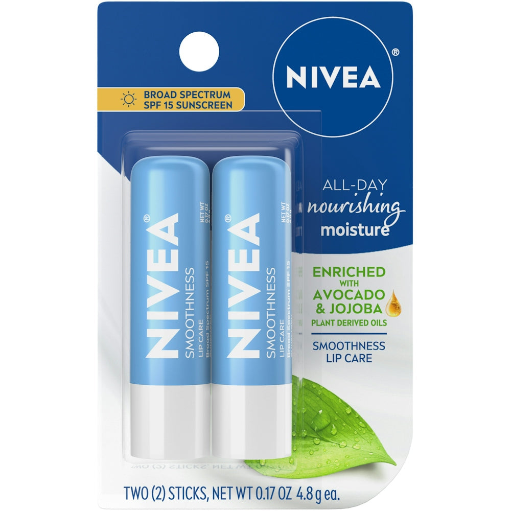 The NIVEA Smoothness Lip Care formula is Mineral Oil free and has broad spectrum SPF 15 sunscreen to help prevent lips from sunburn. This product is also enriched with a variety of nourishing, oils including Shea Butter, Jojoba Oil, and Avocado Oil, to keep lips beautiful and provide all-day nour..