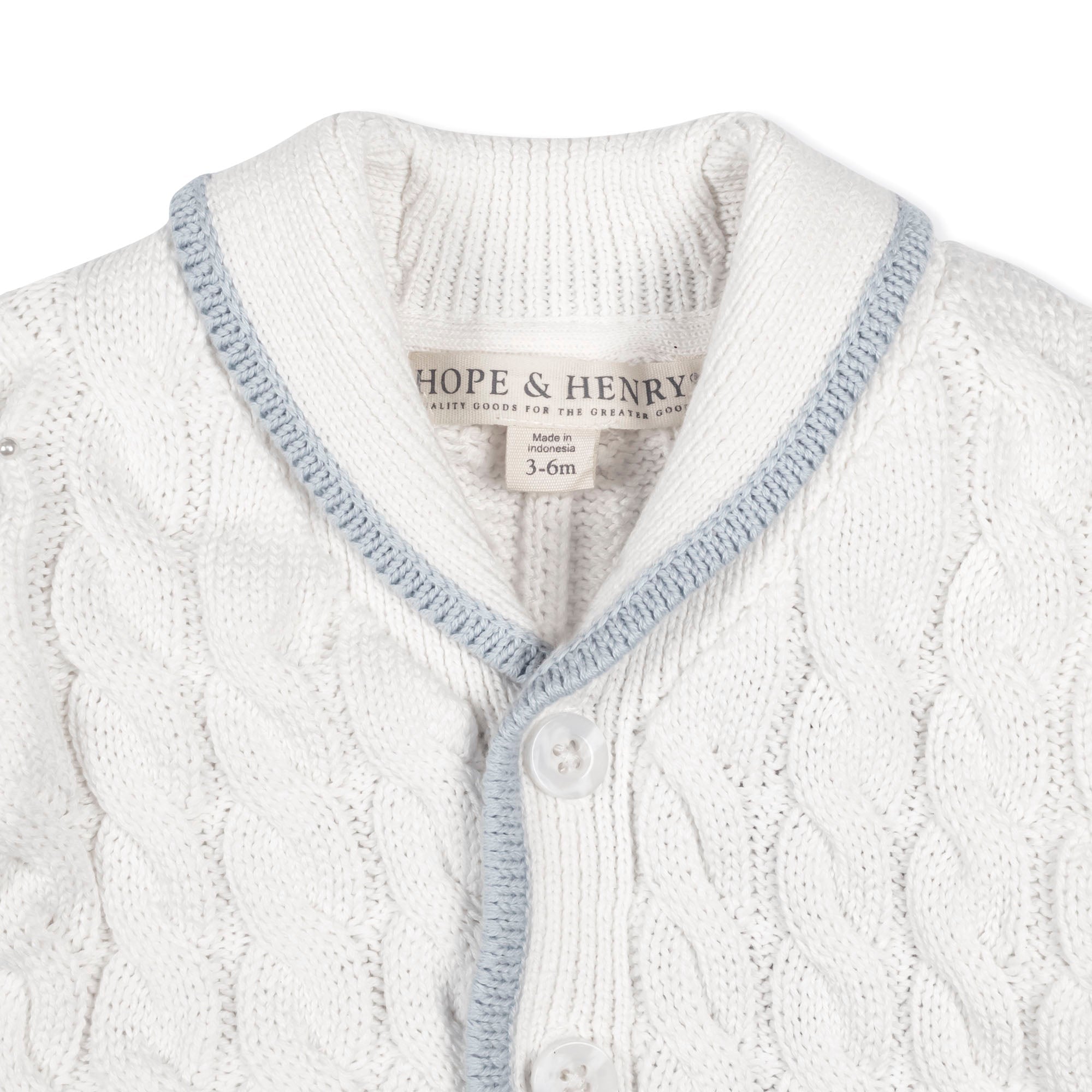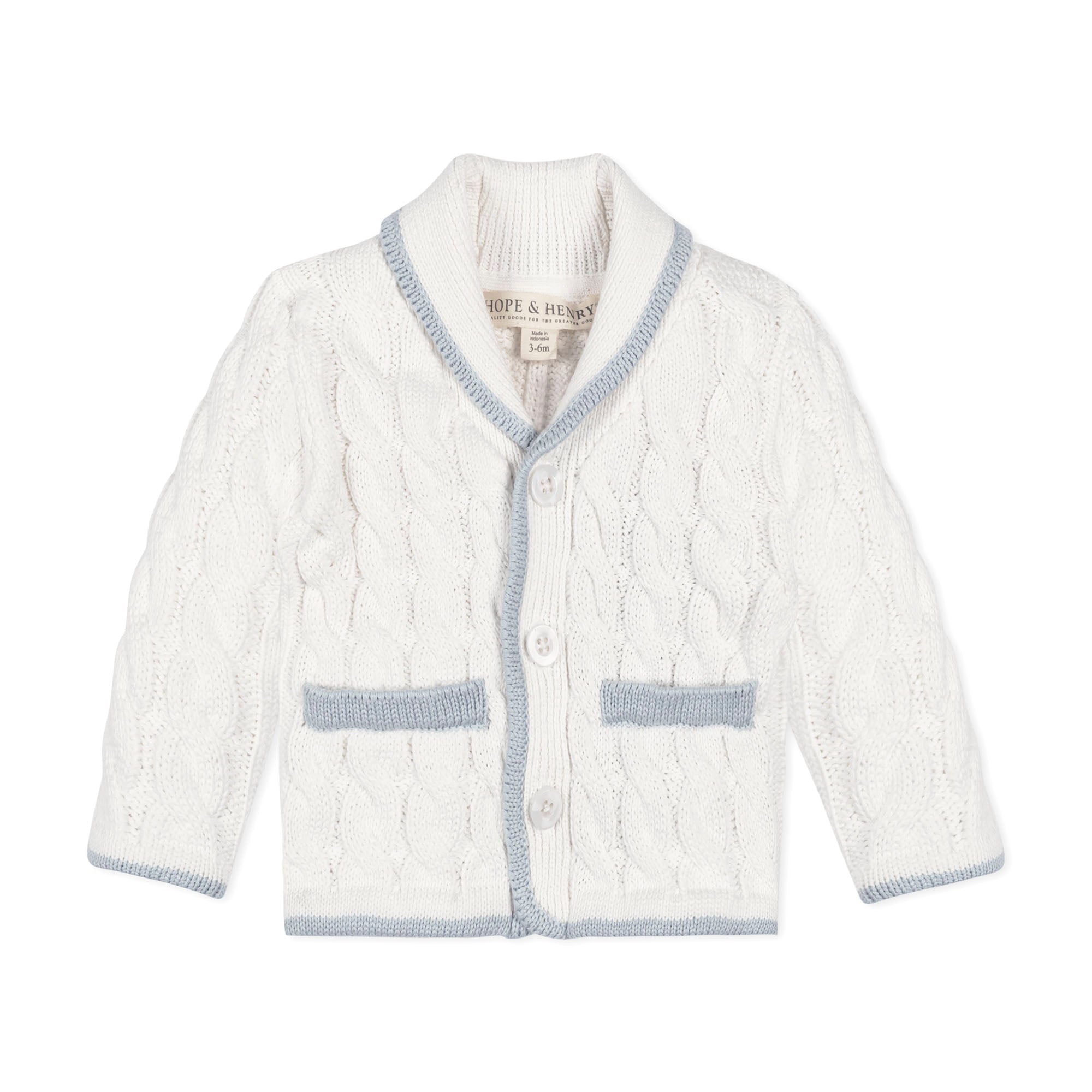 Our sweet matching sweater set in soft organic cotton features a long sleeve shawl collar cardigan and a cozy legging to keep baby warm. Classic cable knit and front pockets adorn the cardigan which has a button front closure and contrast tipping. Legging has an easy pull-on elastic waist. The perfect gift.