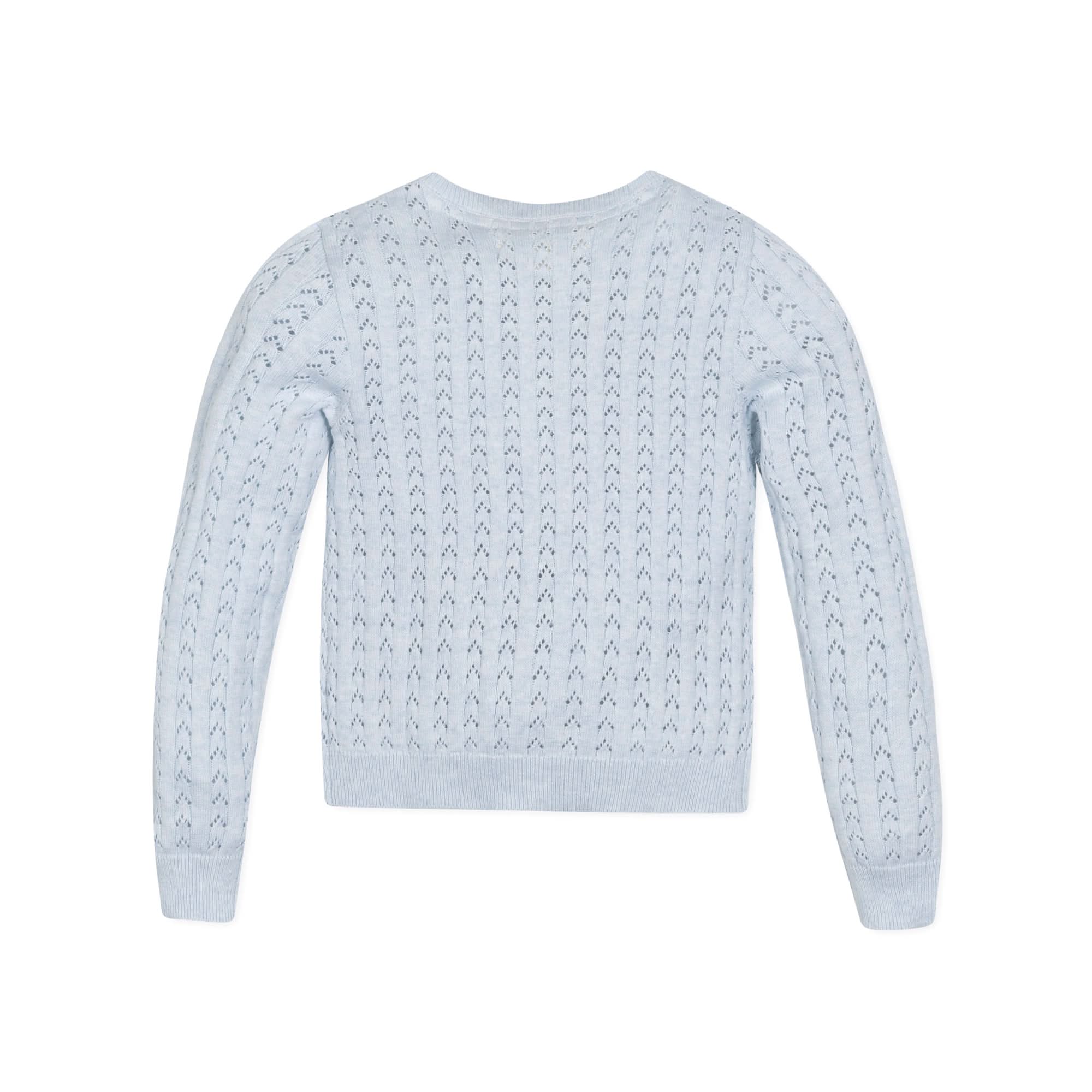 A classic cardigan silhouette in soft organic cotton feels oh-so-special thanks to a combo of sweet pointelle knit and a bow detail at the collar. Features a button front closure. A beautiful layering piece for all of spring and summer's special occasions.
