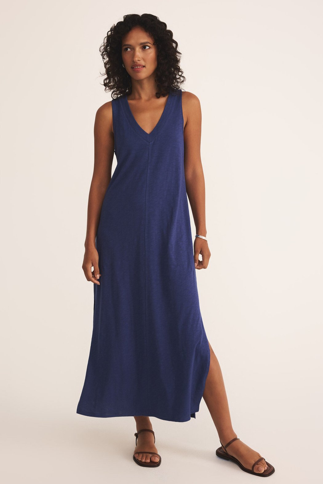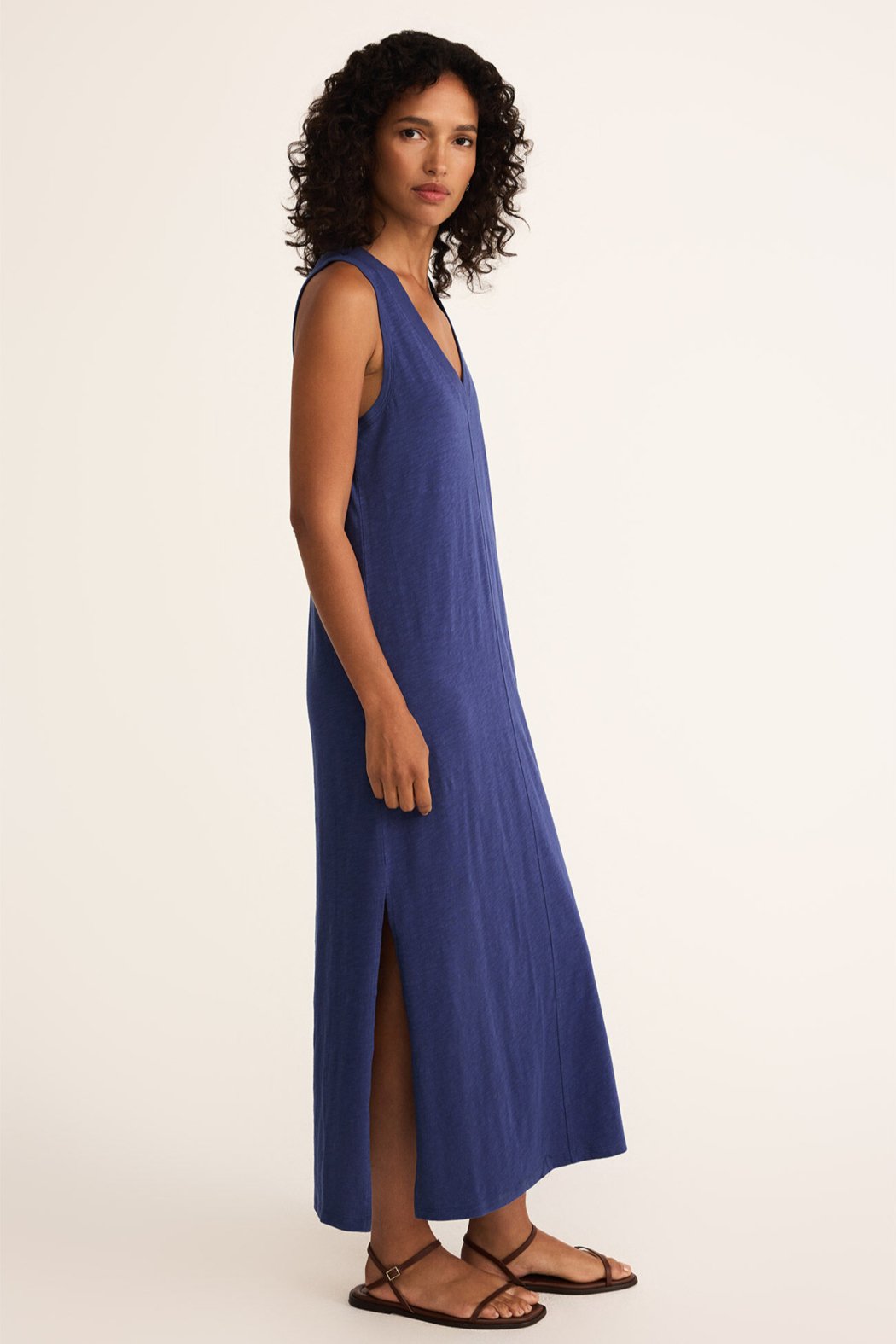 Palisades Midi Dress V-neck Sleeveless Midi Length Lightweight Heavy soft wash Regular fit 40s Cotton Slub Jersey: 100% Cotton