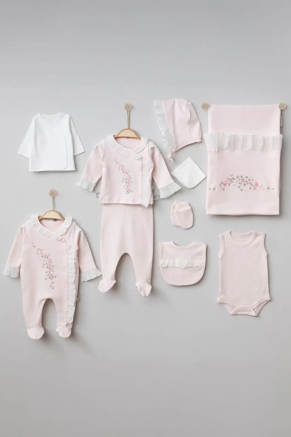 This adorable baby clothing set from THA Dressing combines style and comfort perfectly. With its pastel pink tones and delicate floral patterns, it adds a sweet touch to your baby's wardrobe. Made from soft cotton, these outfits are gentle on your little one's sensitive skin and keep them comfy all day long. Cute and cozy, this set is a perfect choice for your baby's early months.