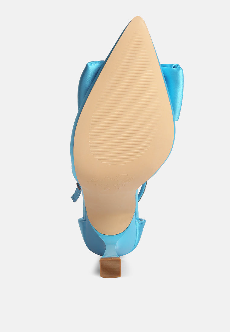 Elevate your style with these stiletto heels and bring a touch of elegance to your ensemble. This ultra-feminine design is secured with an ankle strap and a pin buckle fastening closure. Adorned with a gorgeous rhinestones embellished bow and ankle strap. Making it perfect for special occasions that demand a hint of glamour.