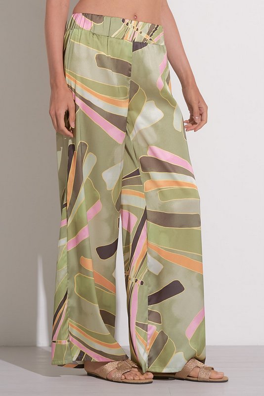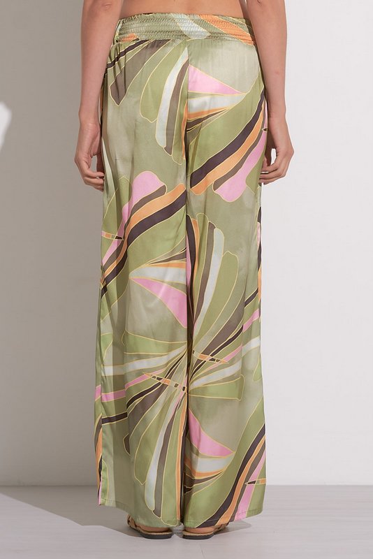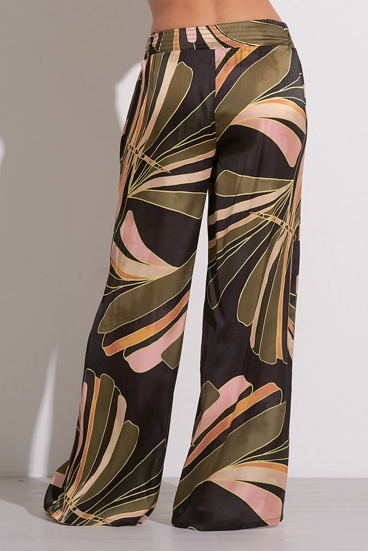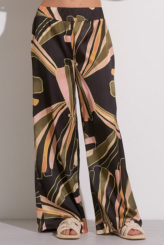 The Simi Pants feature a flattering elastic waistband and a wide-leg fit, made from silky material with a bold, eye-catching print. These pants are perfect for dressing up a simple top or pairing with the Solaris Top for a chic, complete look.