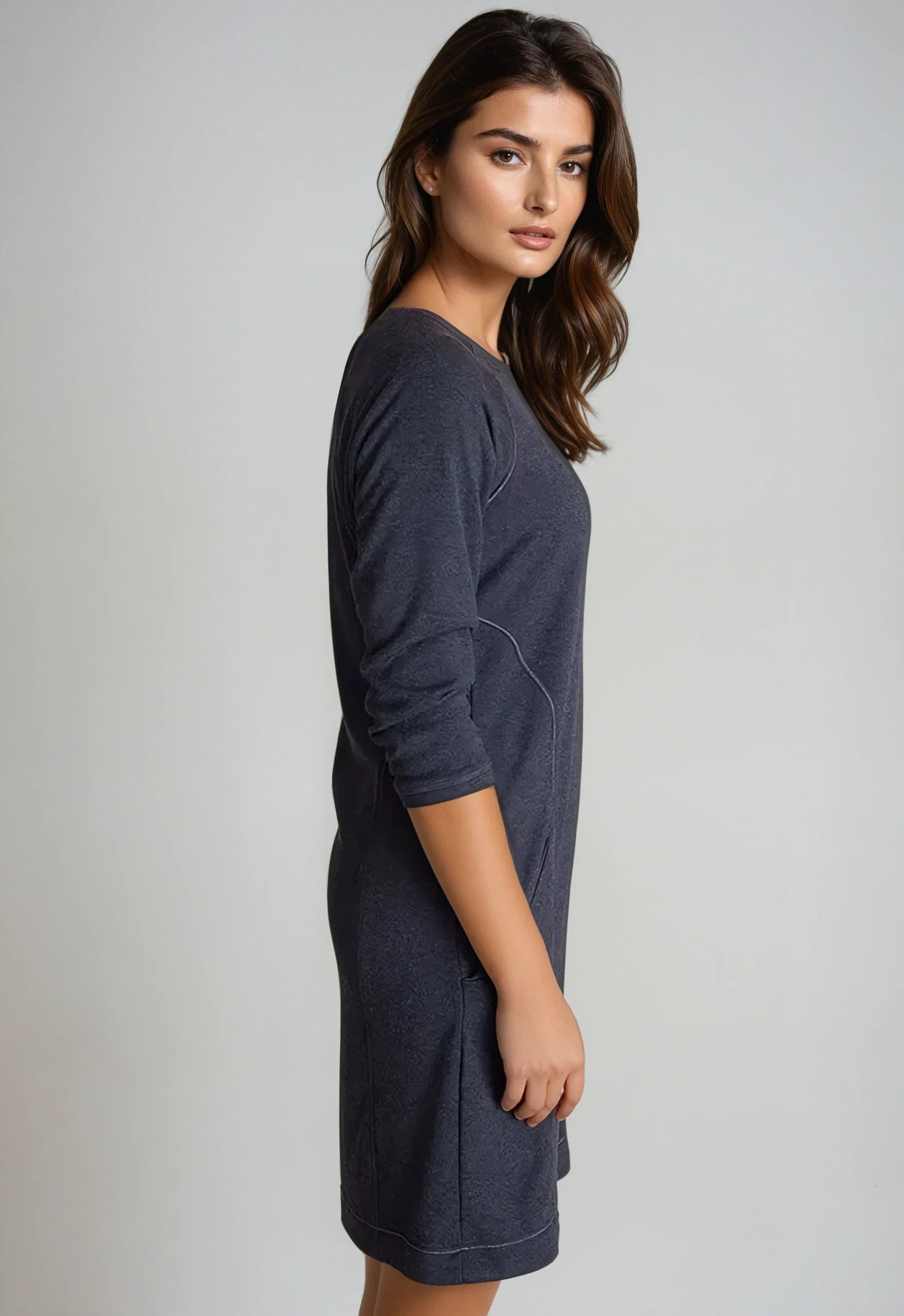The most luxurious way to work-from-home: our super-soft, super-elegant Stacy Dress is cool without the commute. If your sweats were a dress, they'd be the Stacy dress ... a comfy-chic dress (with pockets, of course) that can take you from the sofa-to-skype, feeling great without the effort.