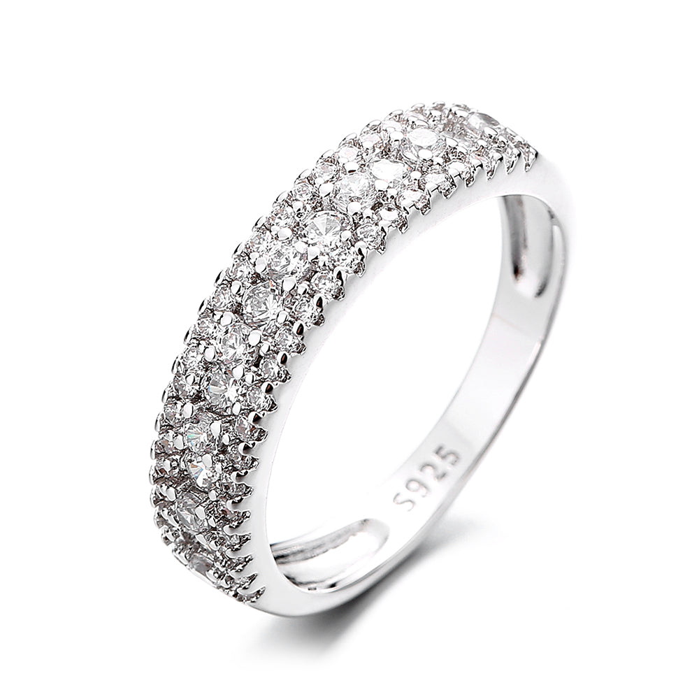 Sterling Silver 3 Row Brilliant Cut Crystal Eternity Band Ring