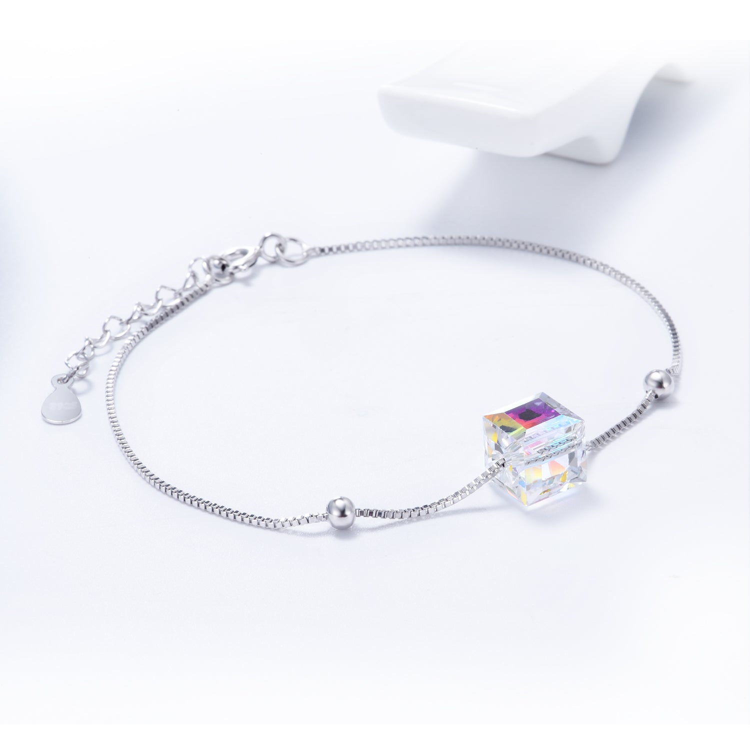 Sterling Silver Aurora Borealis Swarovski Crystal Cube Bracelet
